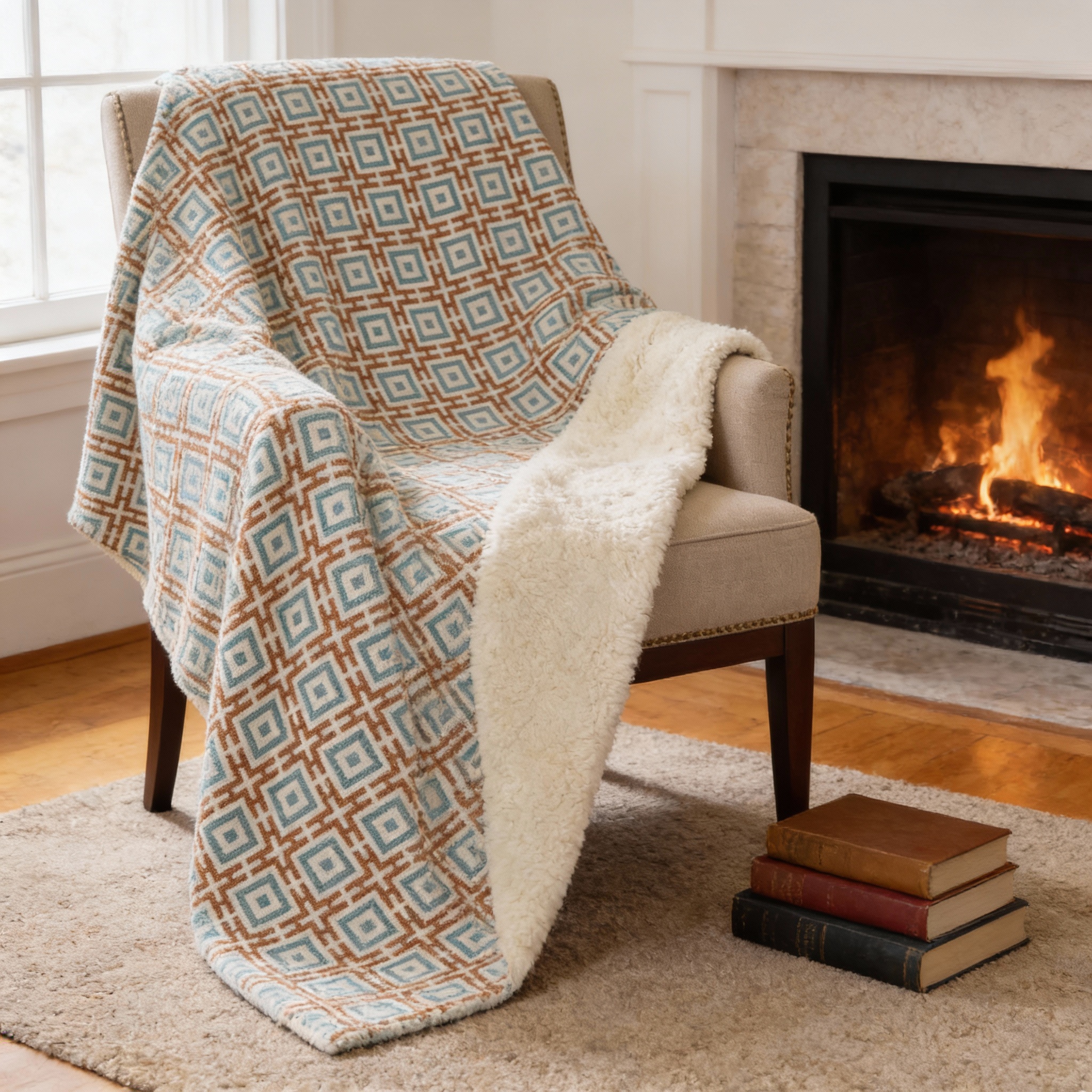 geometric microfiber plush throw blanket, microfiber plush throw blanket, ivory teal geometric microfiber plush, plush throw blanket, 50" X 70" orange ivory |