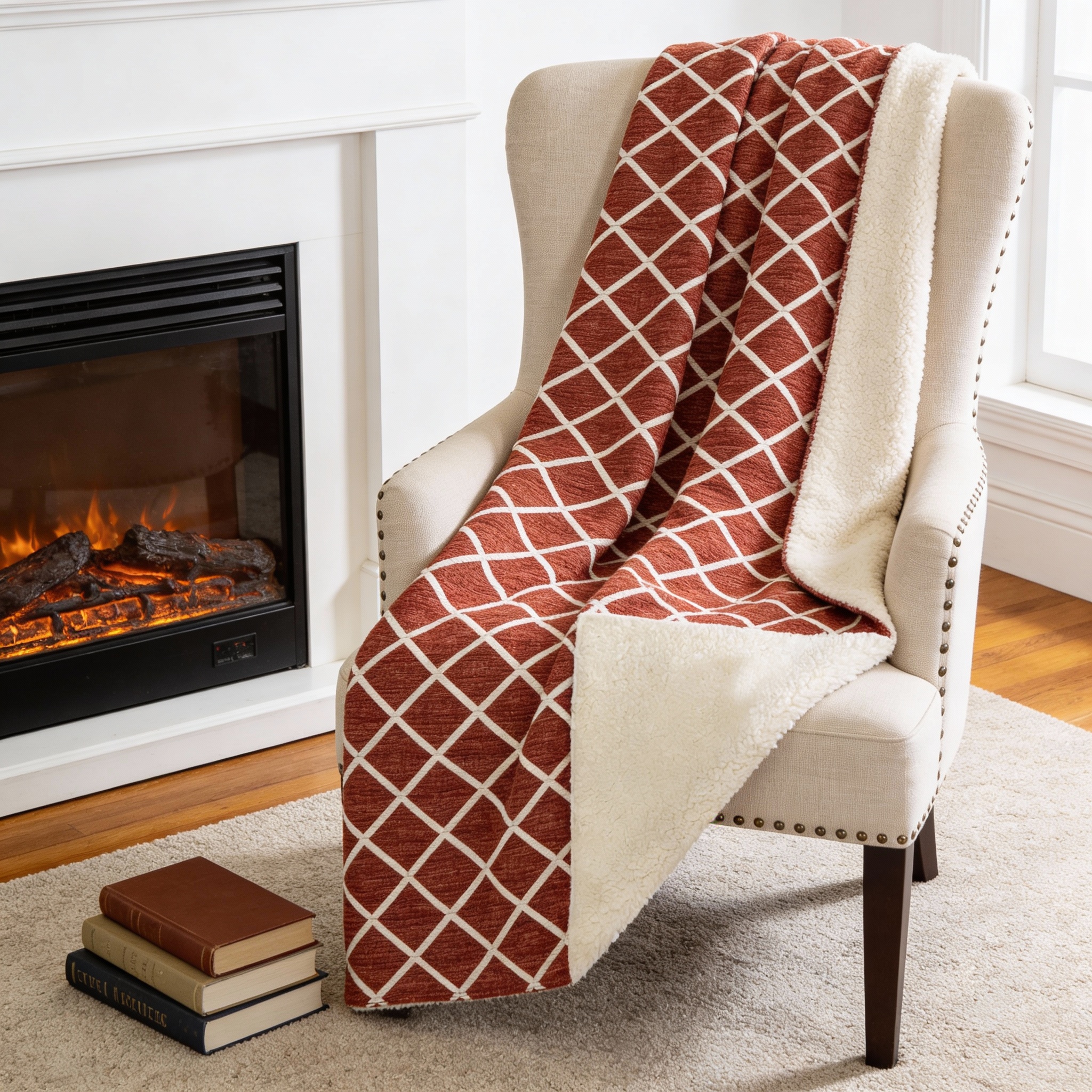 This welcoming 50-inch x 70-inch red and ivory geometric microfiber plush throw blanket is a must-have for every sofa, chaise, and bed. This plush throw is cozy soft beyond belief and oh-so-giftable. Features a woven geometric design that offers sumptuous softness and texture that you'll cherish for years to come. Made from microfiber this blanket will make a great addition to any room it's added to. Layering your furnishings with a decorative throw has the ability to awaken a tired living room or elevate the design of your bedroom simply by providing elements of color and texture that weren't there before. This cozy throw blanket makes the perfect add-on to movie nights and lazy afternoons. 70.00-inch h x 50.00-inch w x 0.50-inch d.