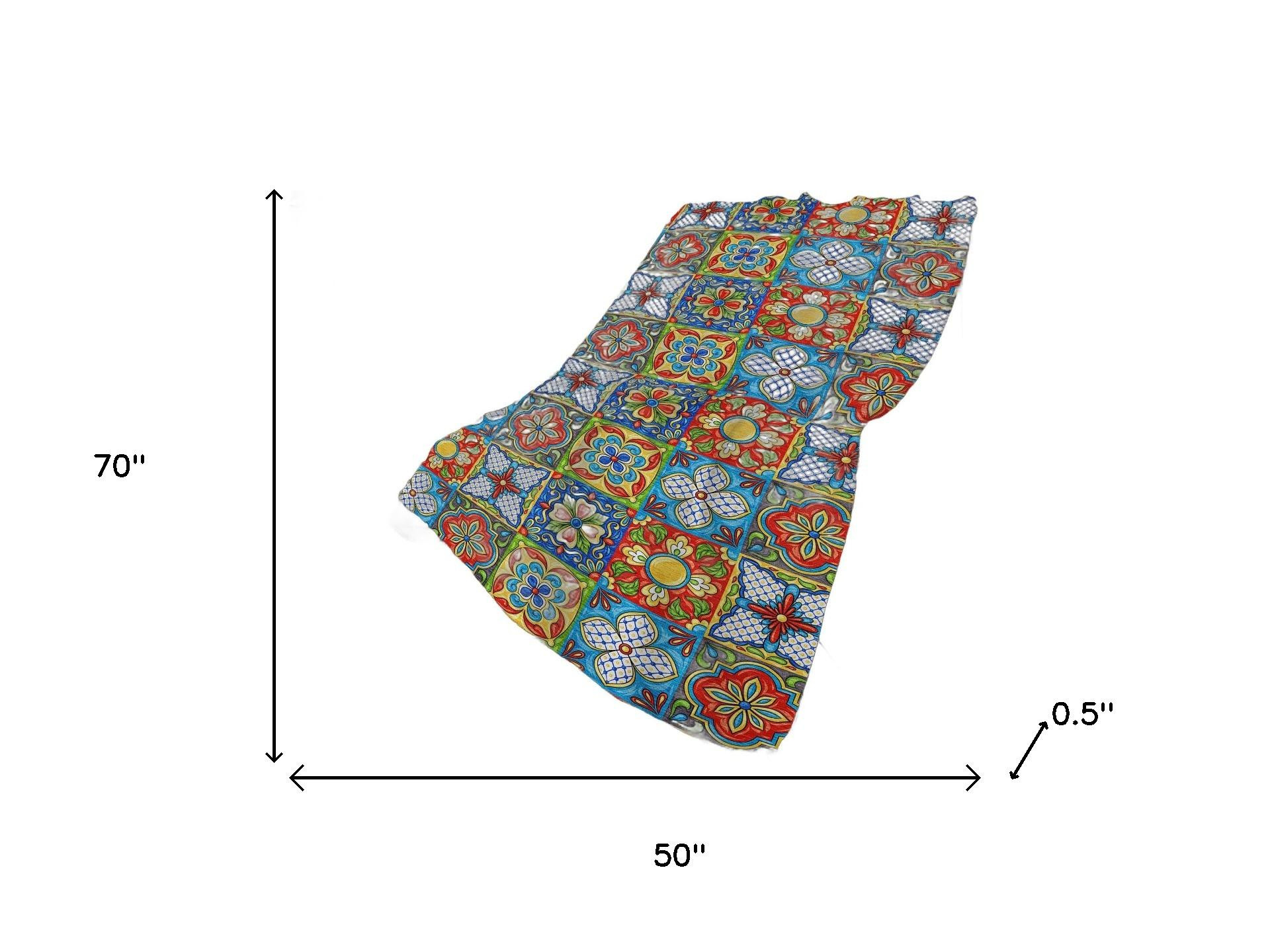 This 50-inch x 70-inch blue red and yellow floral polyester woven plush throw blanket brings a classic, refined style to your space. This plush throw is cozy soft beyond belief and oh-so-giftable. Features a woven floral design that offers sumptuous softness and texture that you'll cherish for years to come. Made from polyester this blanket will make a great addition to any room it's added to. Add extra texture to your decor and turn your room into an inviting space. This cozy throw blanket makes the perfect add-on to movie nights and lazy afternoons. 70.00-inch h x 50.00-inch w x 0.50-inch d.