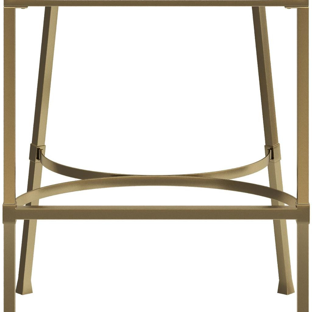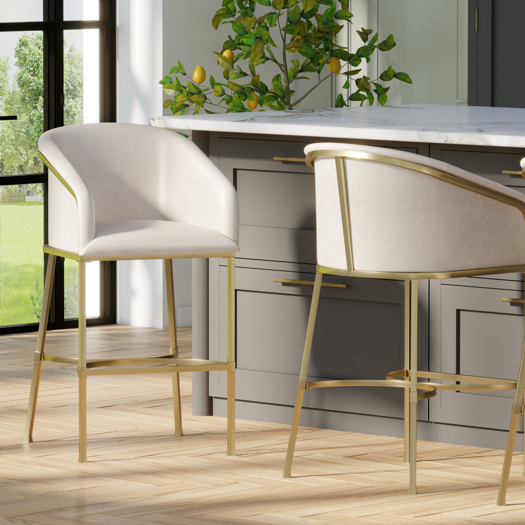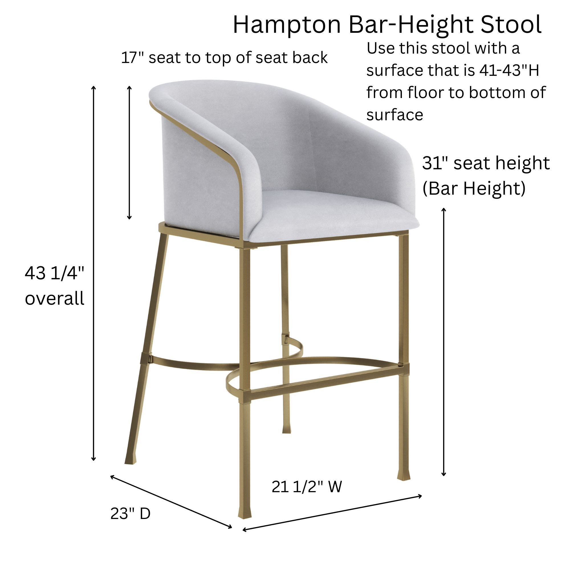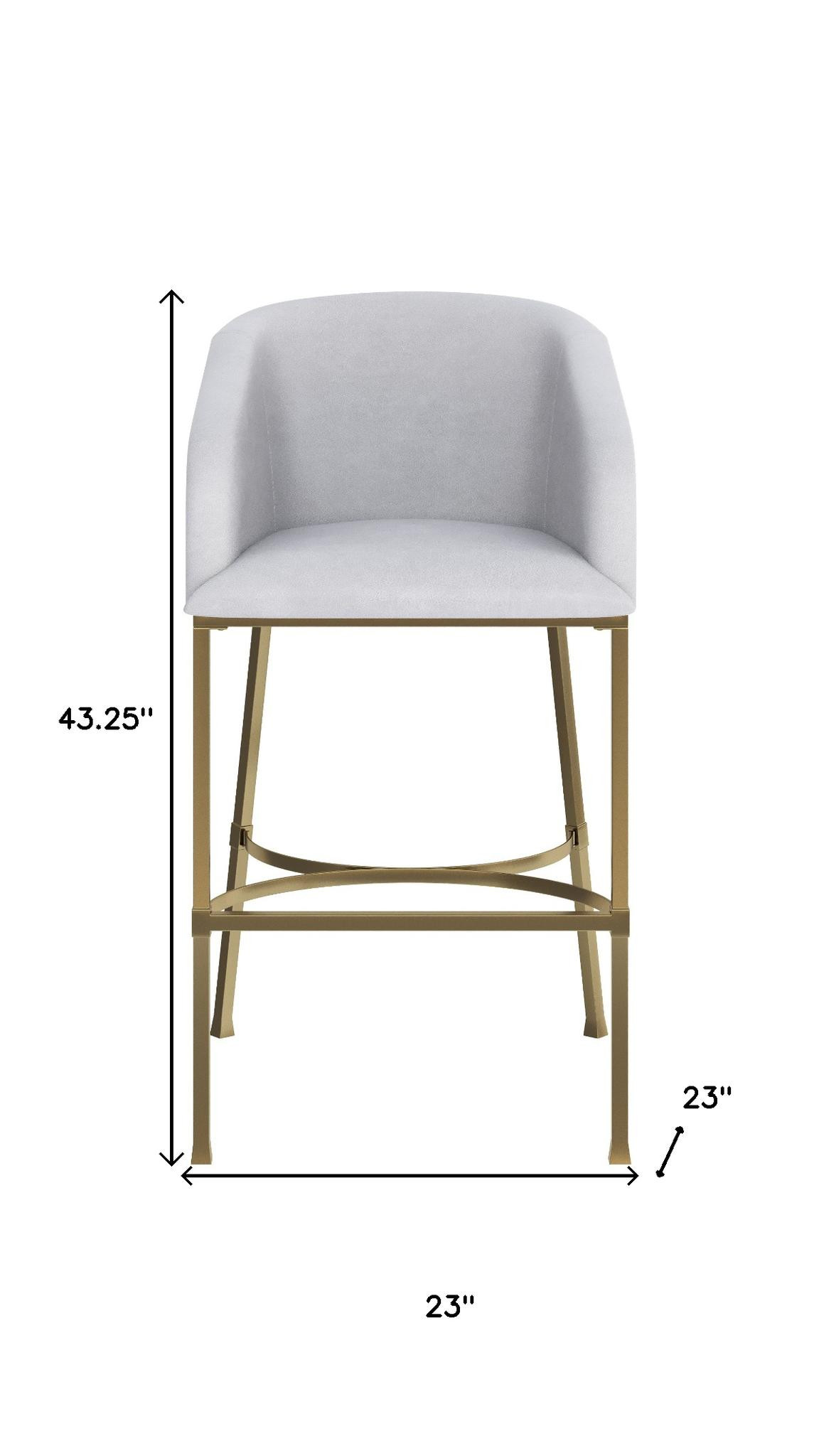 Comfortable enough to sit in for awhile, this 31-inch white and gold wood fabric and steel low back bar height bar chair will transcend the look of your room. Quality construction from gold steel combines with white manufactured wood to give this stool a fresh and updated look. A low back mixed with a bucket shaped seat design makes this chair both comfortable and fashionable. 43.25-inch h x 23.00-inch w x 23.00-inch d.