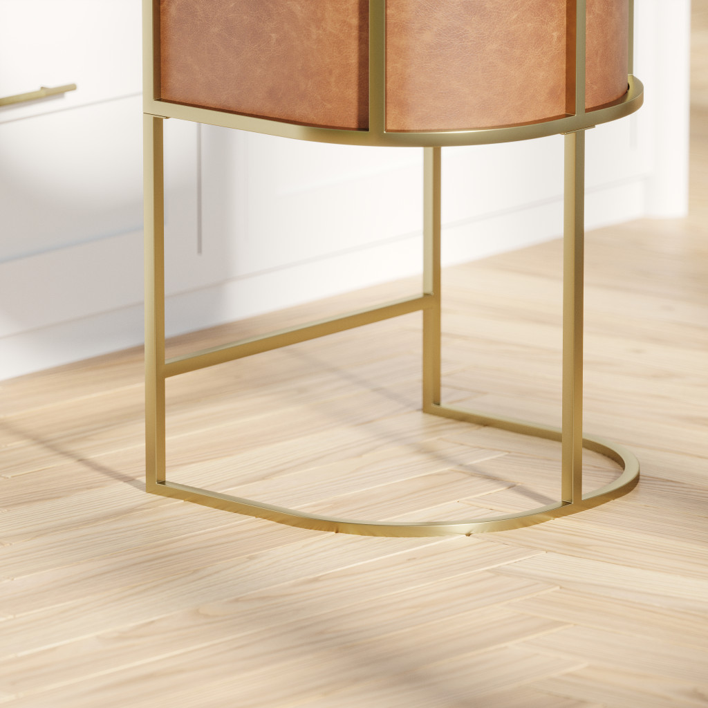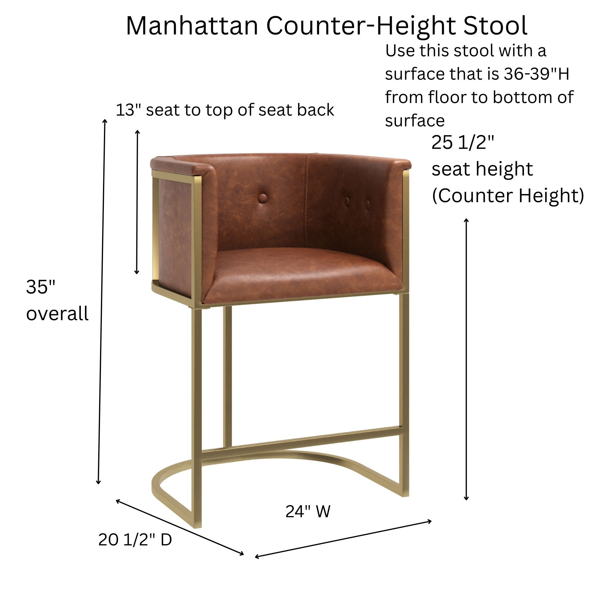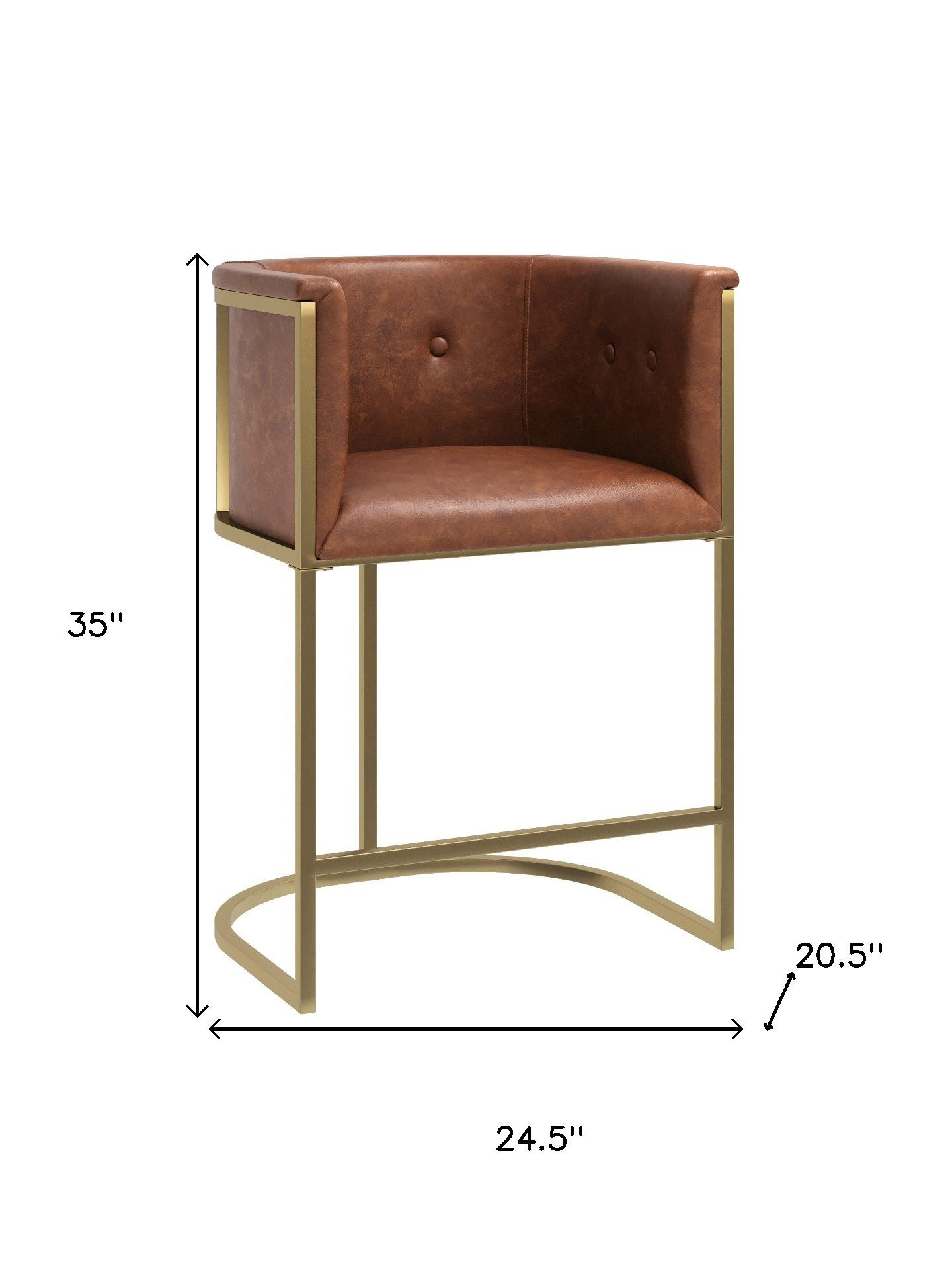 The perfect way to add some extra seating in your home, this 26-inch brown and gold wood fabric and steel low back counter height bar chair will elevate the look and vibe of your room. The brown manufactured wood seat of this stool is a nice contrast to the high quality, gold steel of the base. The bucket shape of the seat combines with a low back to give this chair a comfortable and fashionable look. 35.00-inch h x 20.50-inch w x 24.50-inch d.