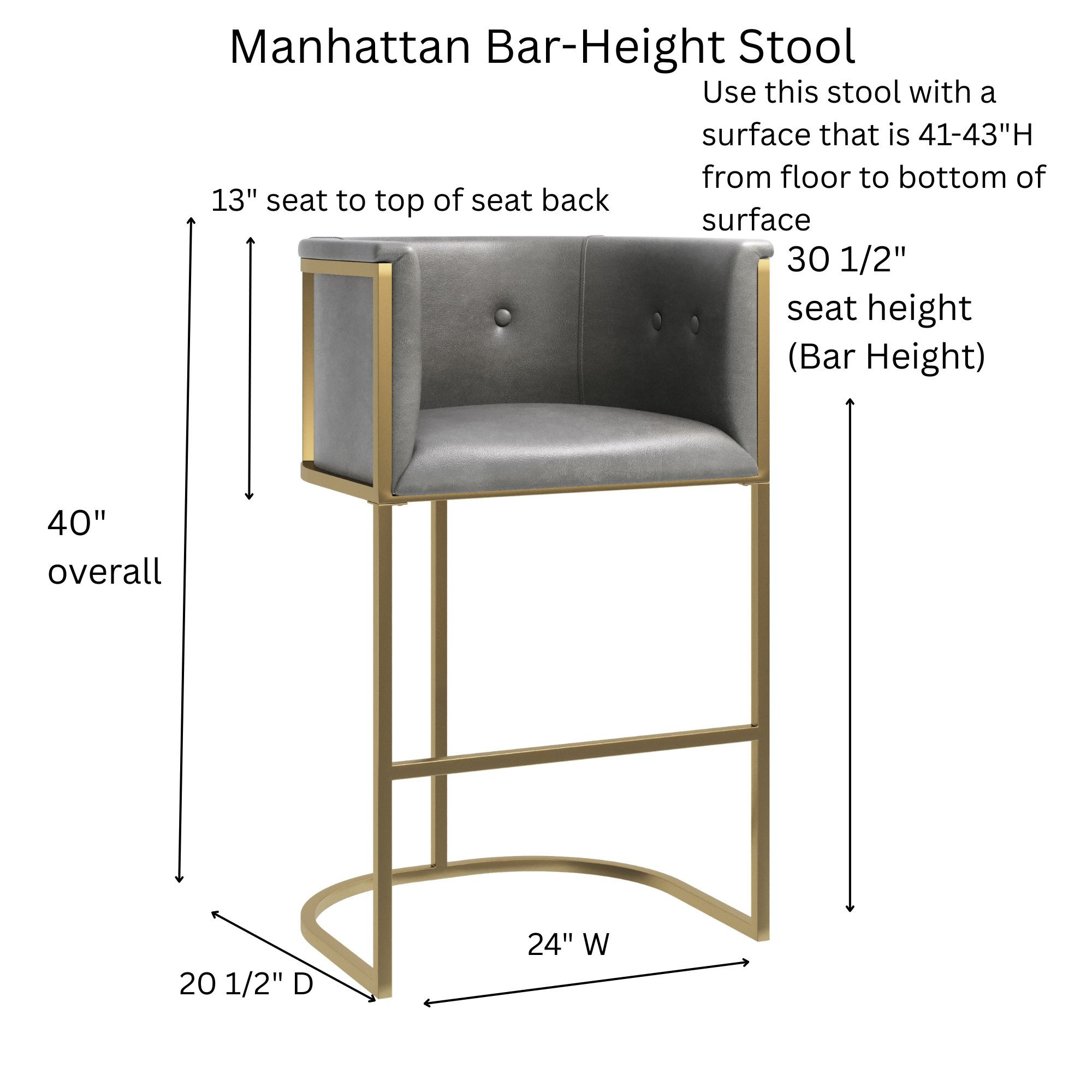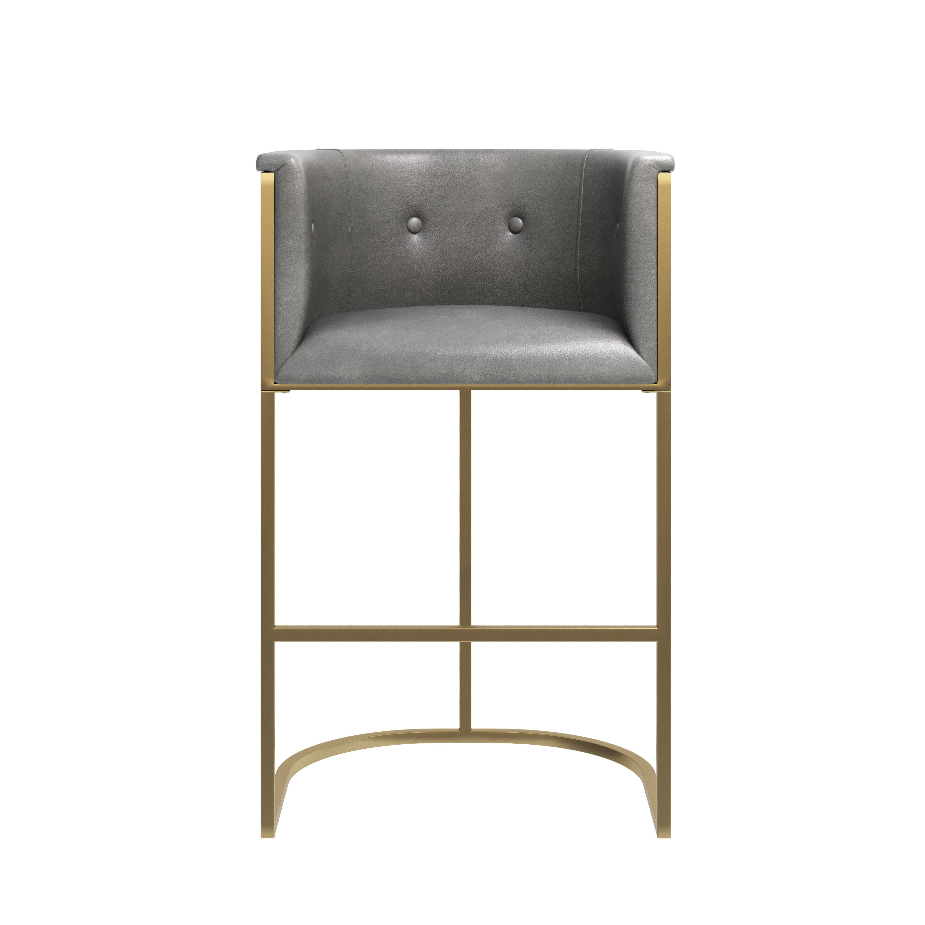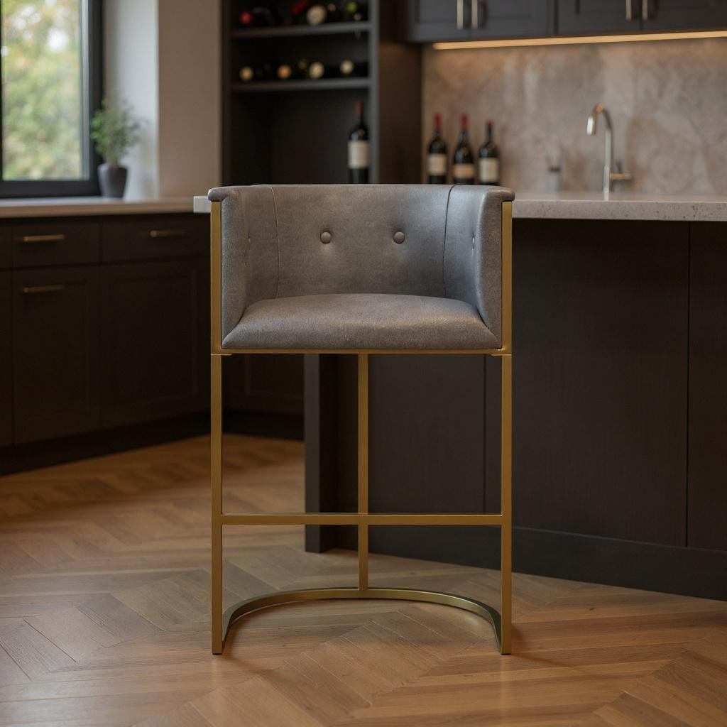 Comfortable enough to sit in for awhile, this 31-inch gray and gold wood fabric and steel low back bar height bar chair will transcend the look of your room. The gray manufactured wood seat of this stool is a nice contrast to the high quality, gold steel of the base. Not only good looking and stylish, this chair features a bucket shaped seat and a low back for the ultimate in comfort and enjoyment. 40.00-inch h x 20.50-inch w x 24.50-inch d.