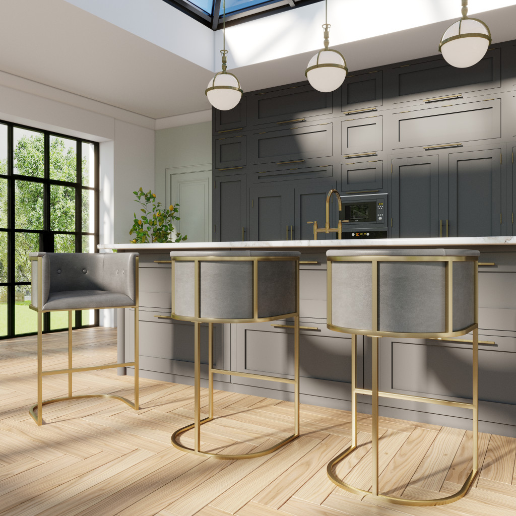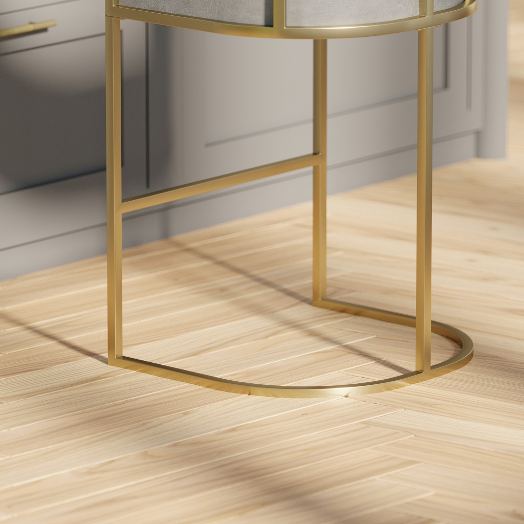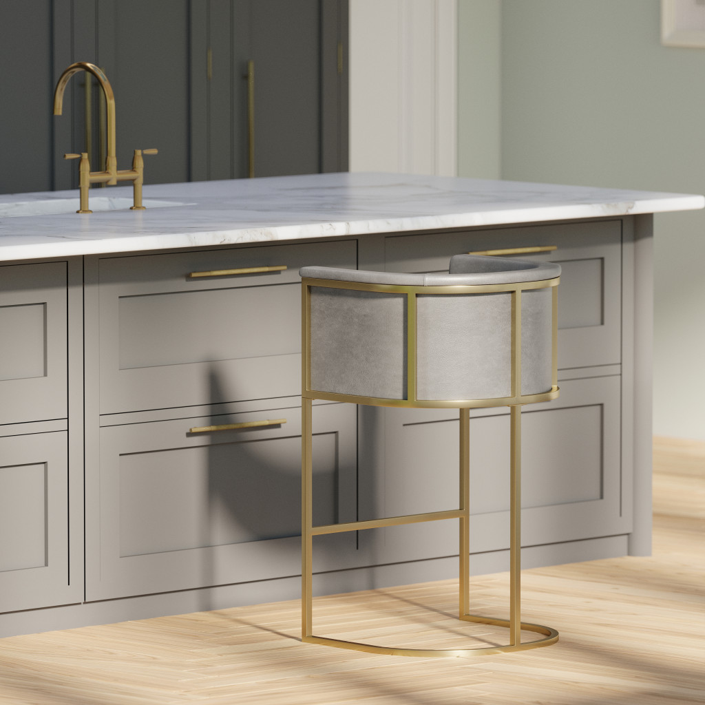 Comfortable enough to sit in for awhile, this 31-inch gray and gold wood fabric and steel low back bar height bar chair will transcend the look of your room. The gray manufactured wood seat of this stool is a nice contrast to the high quality, gold steel of the base. Not only good looking and stylish, this chair features a bucket shaped seat and a low back for the ultimate in comfort and enjoyment. 40.00-inch h x 20.50-inch w x 24.50-inch d.
