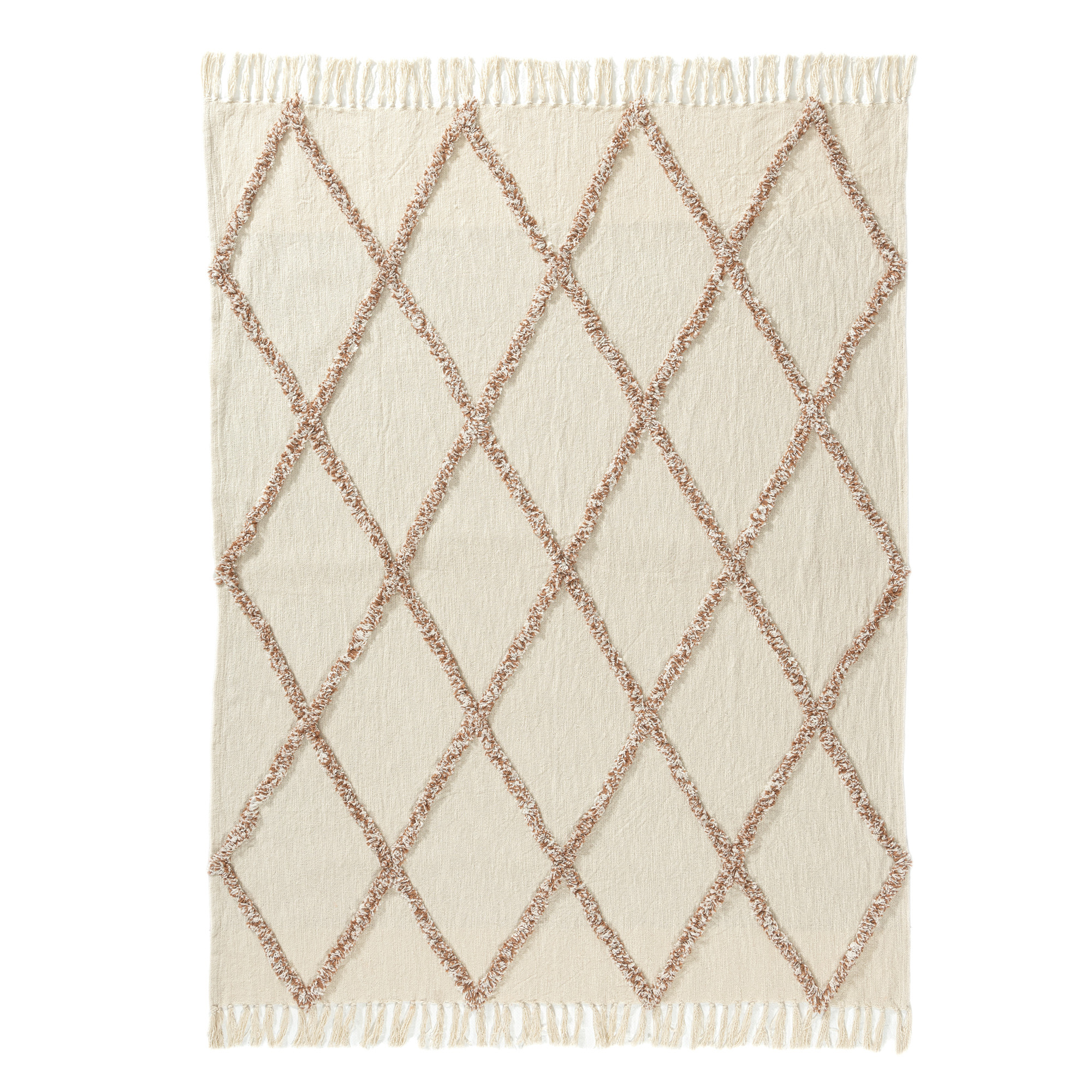 argyle cotton woven throw blanket, cotton woven throw blanket, woven throw blanket, ivory brown argyle cotton woven, 50" X 60" ivory brown argyle cotton |
