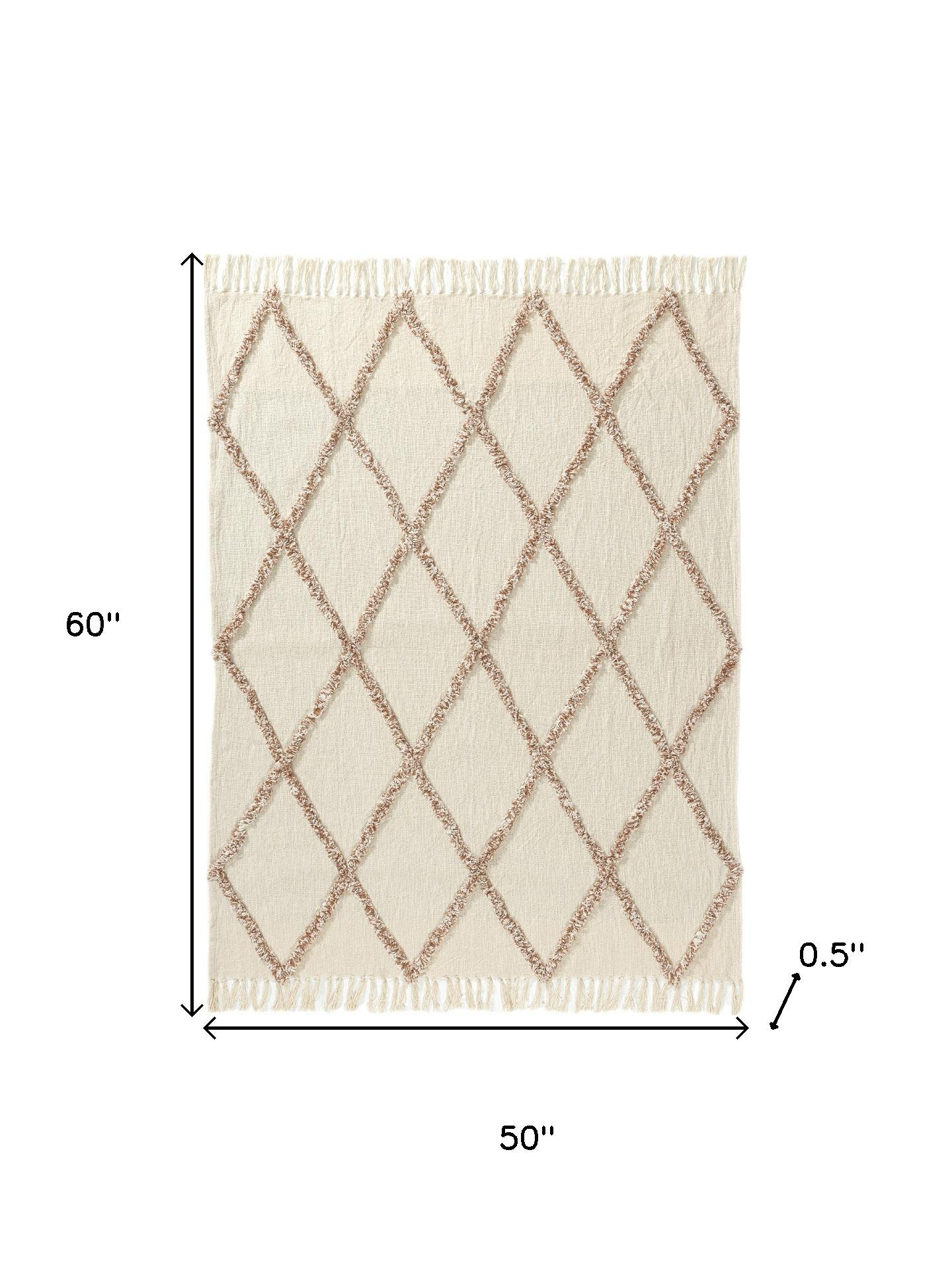 This 50-inch x 60-inch ivory and brown argyle cotton woven throw blanket brings a classic, refined style to your space. Hand woven by true artisans, this good looking throw will elevate its surroundings with its genuine and artisanal style. Features a woven argyle design that offers sumptuous softness and texture that you'll cherish for years to come. Made from cotton this blanket will make a great addition to any room it's added to. Add extra texture to your decor and turn your room into an inviting space. Perfect for your favorite chair, bed or lounging on the couch, this blanket helps bring a warm and fashionable flair to your space. 60.00-inch h x 50.00-inch w x 0.50-inch d.