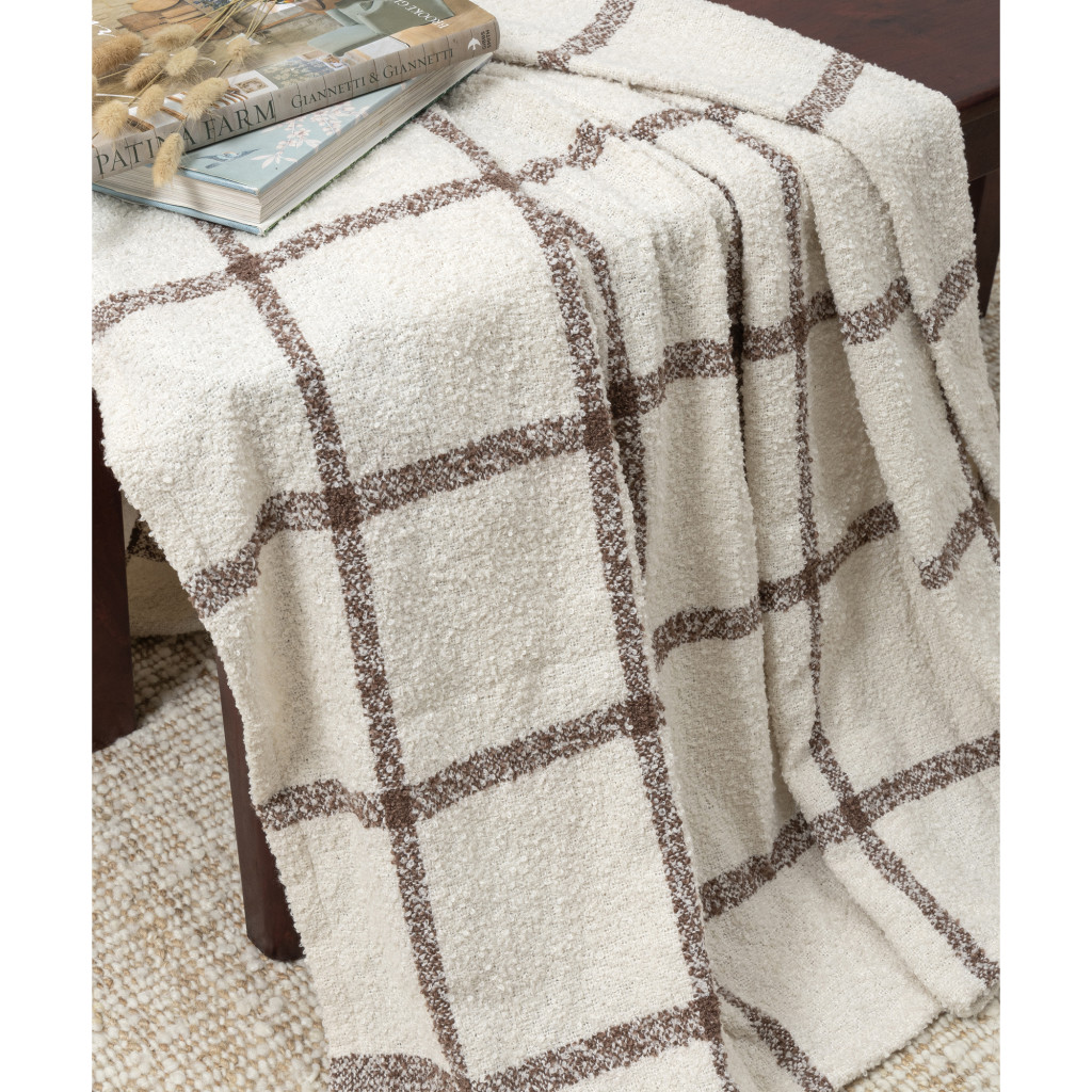 This 50-inch x 60-inch beige and brown checkered polyester woven throw blanket is the best (and most stylish) way to wrap you and your loved ones in the epitome of cozy all year long. Handmade by true artisans, this good looking throw will elevate its surroundings with its genuine and artisanal style. Features a woven checkered design that offers sumptuous softness and texture that you'll cherish for years to come. Made from polyester this blanket will make a great addition to any room it's added to. Layering your furnishings with a decorative throw has the ability to awaken a tired living room or elevate the design of your bedroom simply by providing elements of color and texture that weren't there before. This cozy throw blanket is sure to become your go-to couch companion. 60.00-inch h x 50.00-inch w x 0.20-inch d.
