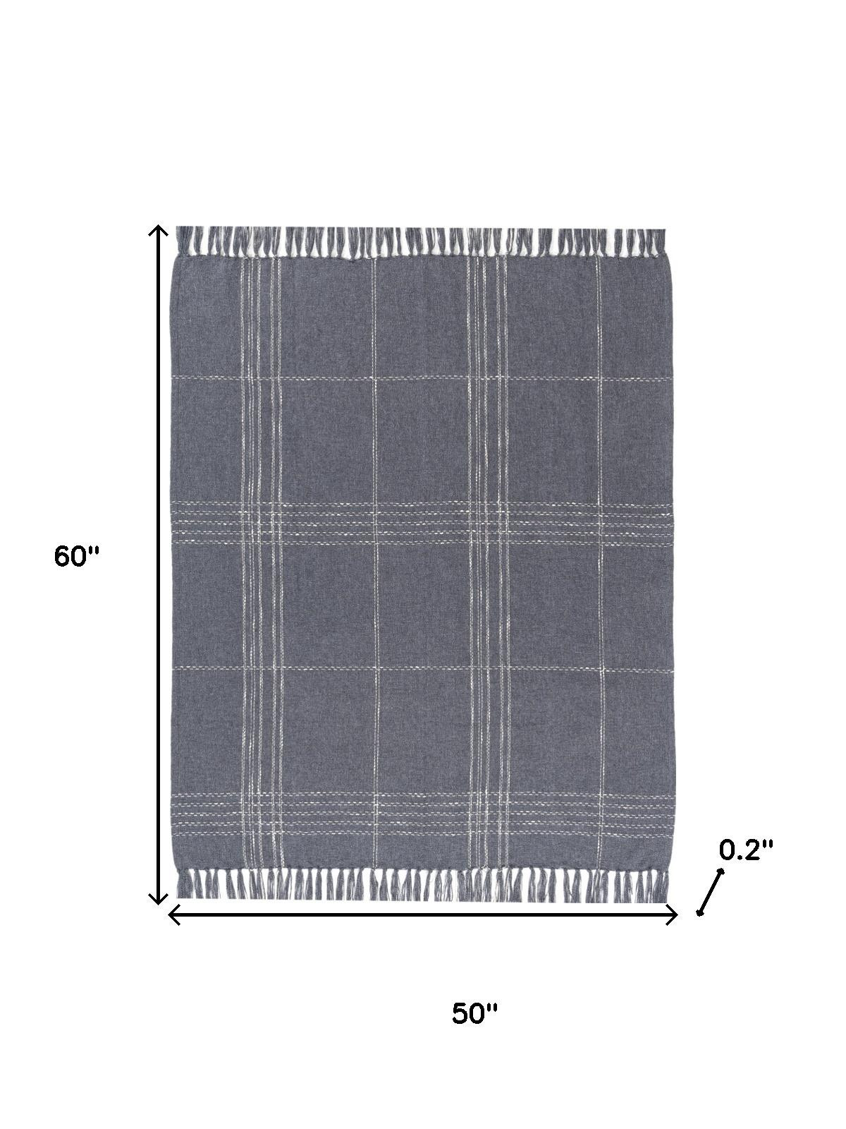 This welcoming 50-inch x 60-inch blue and ivory plaid cotton blend woven throw blanket is a must-have for every sofa, chaise, and bed. Handmade by true artisans, this good looking throw will elevate its surroundings with its genuine and artisanal style. Features a woven plaid design that offers sumptuous softness and texture that you'll cherish for years to come. Made from cotton blend this blanket will make a great addition to any room it's added to. Add extra texture to your decor and turn your room into an inviting space. This cozy throw blanket makes the perfect add-on to movie nights and lazy afternoons. 60.00-inch h x 50.00-inch w x 0.20-inch d.
