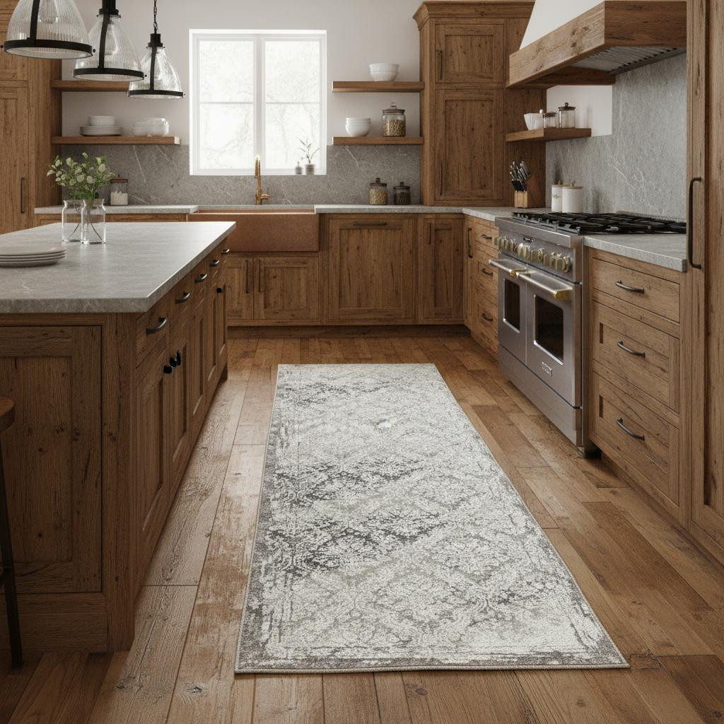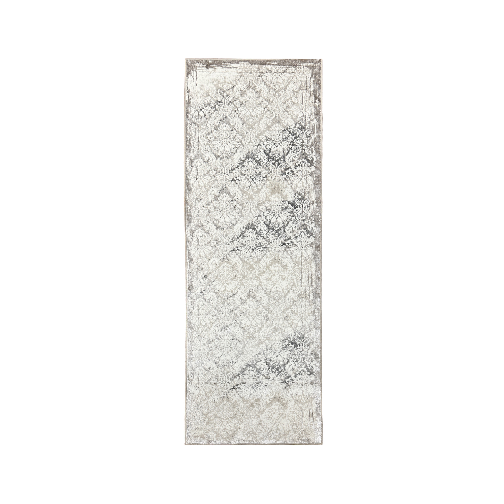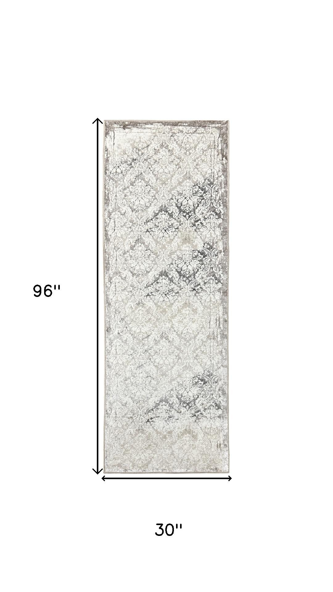 Set an inviting tone in your space with this 8-foot taupe and brown damask runner rug. Ideal for spaces with kids and pets, this rug is stain resistant to help repel dirt and spilled liquids. Built to last, this rug crafted from polyester fibers is known for its durability and long lasting appeal. Rugs are a great way to showcase your style, hide imperfections, warm your home and reduce noise. This larger sized, rustic styled rug is ready to create a focal point or statement piece in your room. This rustic style runner makes a great accent for the hallway, in front of cabinets, in the laundry room, or any other space you need a narrow and long rug. 96.00-inch h x 30.00-inch w x 0.20-inch d.