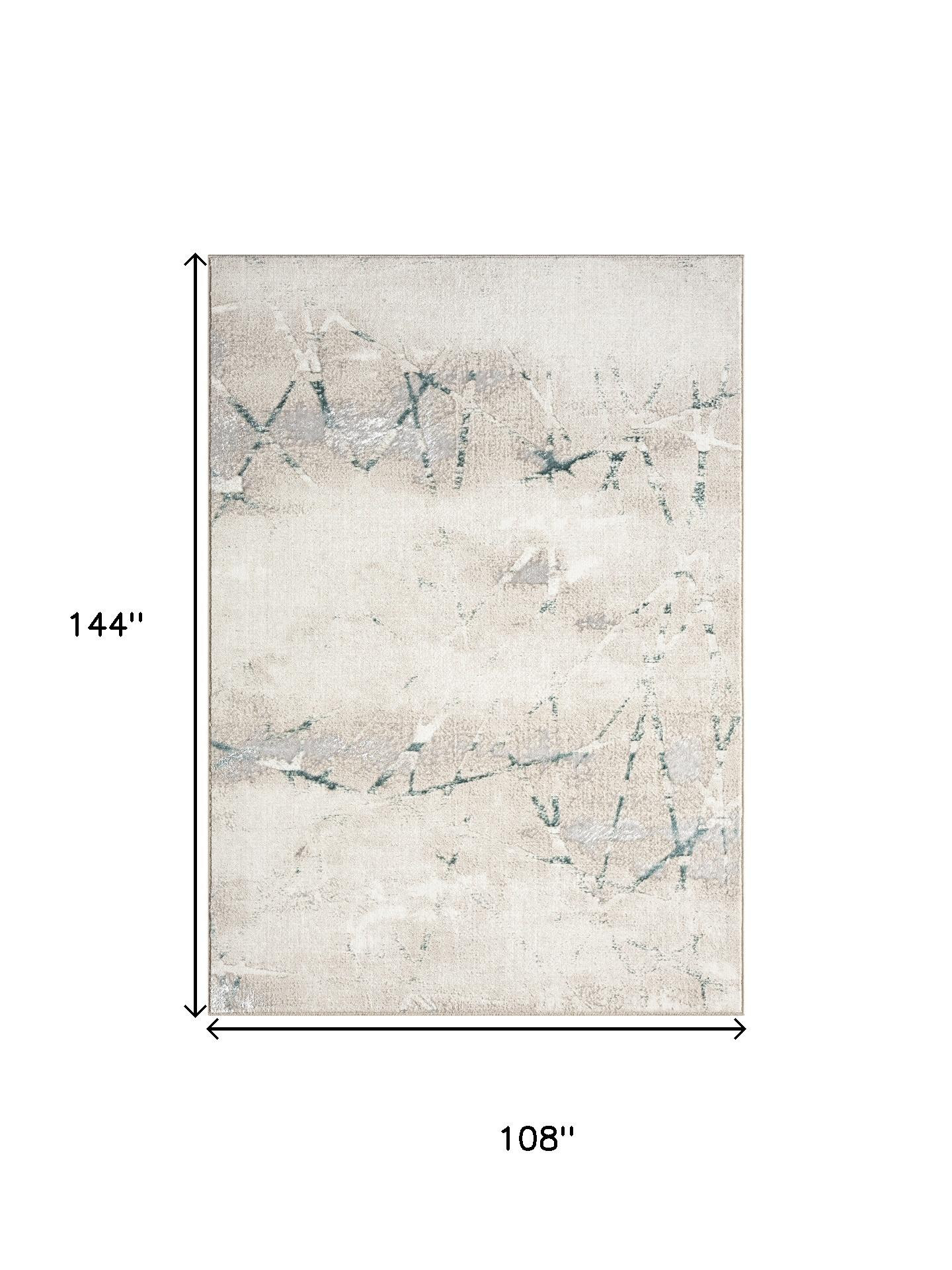 Set an inviting tone in your space with this 9-foot x 12-foot beige and blue abstract distressed area rug. Ideal for spaces with kids and pets, this rug is stain resistant to help repel dirt and spilled liquids. Built to last, this rug crafted from polyester fibers is known for its durability and long lasting appeal. Rugs are a great way to showcase your style, hide imperfections, warm your home and reduce noise. This larger sized, modern styled rug is ready to create a focal point or statement piece in your room. 144.00-inch h x 108.00-inch w x 0.40-inch d.