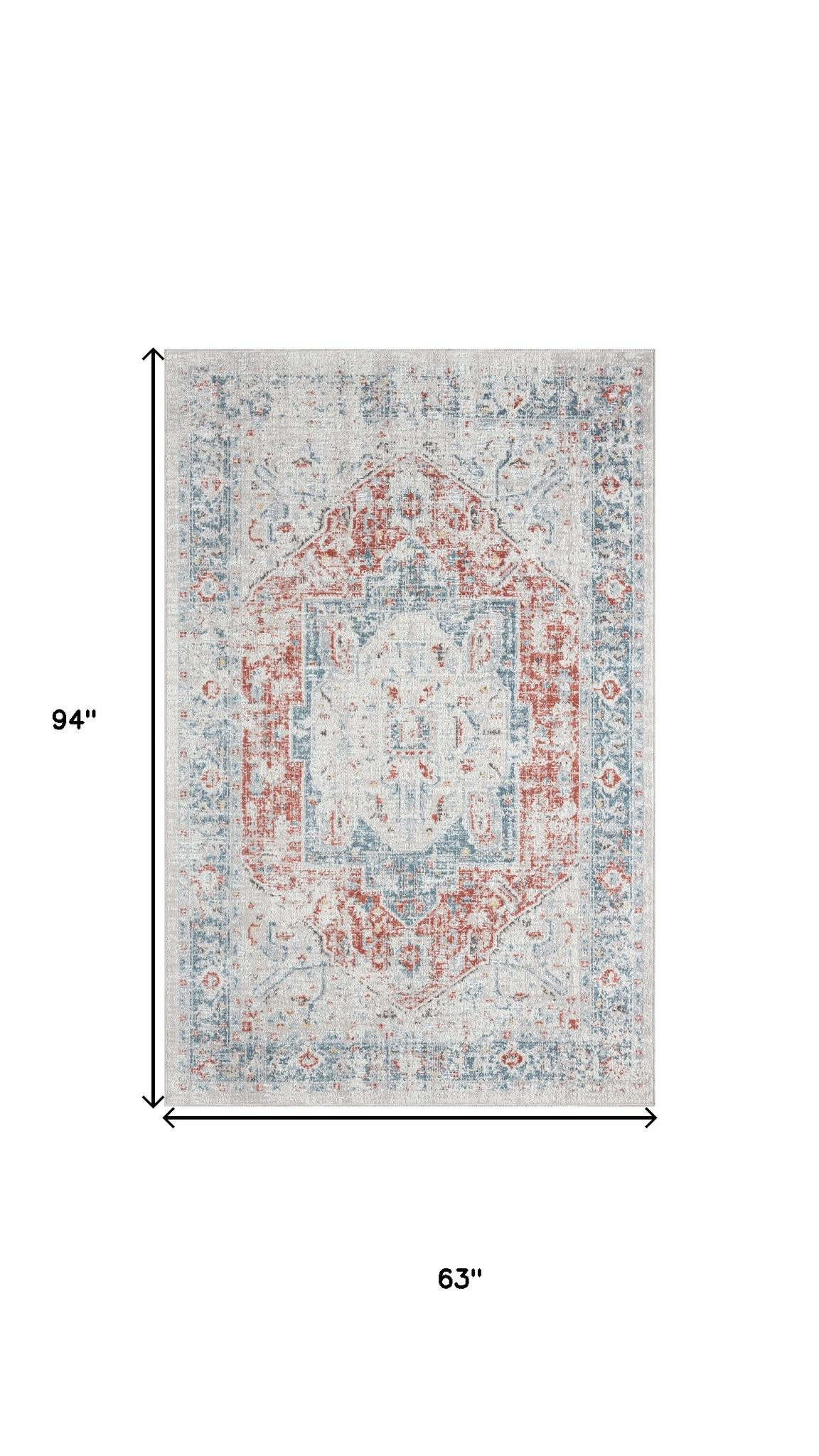 Add great coloration and comfortable texture to your space with this 5-foot x 8-foot blue and orange medallion distressed area rug. Ideal for spaces with kids and pets, this rug is stain resistant to help repel dirt and spilled liquids. Built to last, this rug crafted from polypropylene fibers is known for its durability and long lasting appeal. Rugs are a great way to showcase your style, hide imperfections, warm your home and reduce noise. This larger sized, bohemian styled rug is ready to create a focal point or statement piece in your room. 94.00-inch h x 63.00-inch w x 1.00-inch d.
