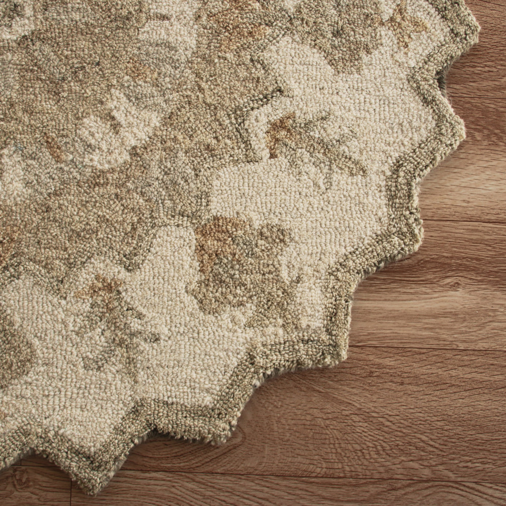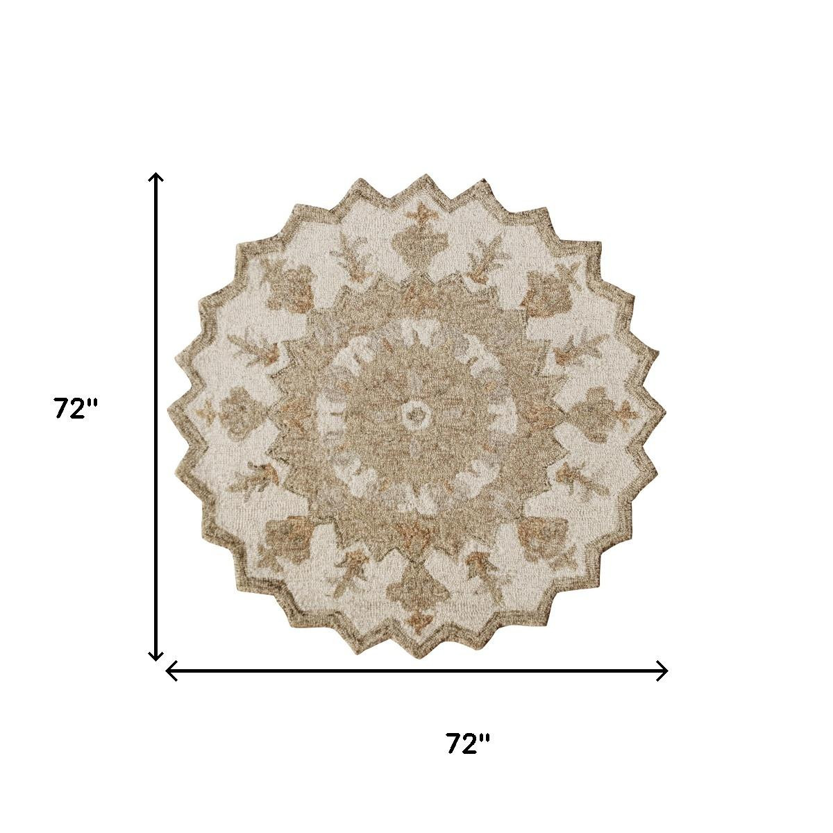 Add some artistry to your room with this 6-foot beige and brown wool medallion hand tufted round rug. Crafted by skilled artisans, this hand tufted rug is genuine and unique. No two will be exactly alike. Rugs are a great way to showcase your style, hide imperfections, warm your home and reduce noise. This larger sized, rustic styled rug is ready to create a focal point or statement piece in your room. 72.00-inch h x 72.00-inch w x 0.50-inch d.