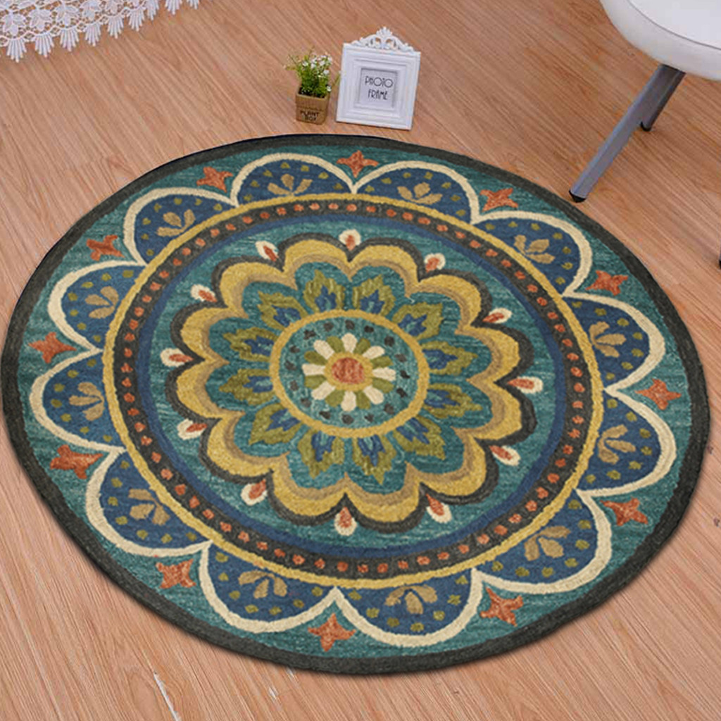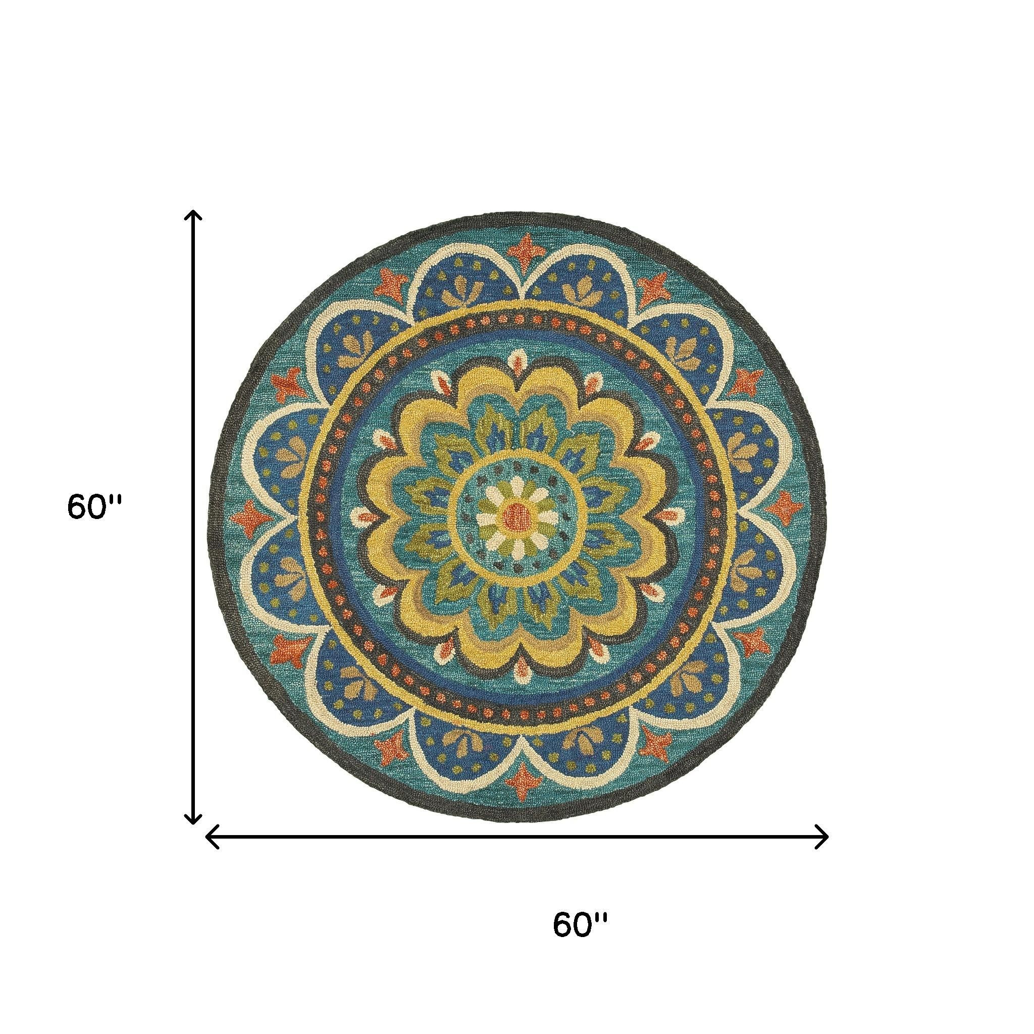 Add some artistry to your room with this 5-foot blue and yellow wool medallion hand tufted round rug. Crafted by skilled artisans, this hand tufted rug is genuine and unique. No two will be exactly alike. Rugs are a great way to showcase your style, hide imperfections, warm your home and reduce noise. This larger sized, contemporary styled rug is ready to create a focal point or statement piece in your room. 60.00-inch h x 60.00-inch w x 0.50-inch d.