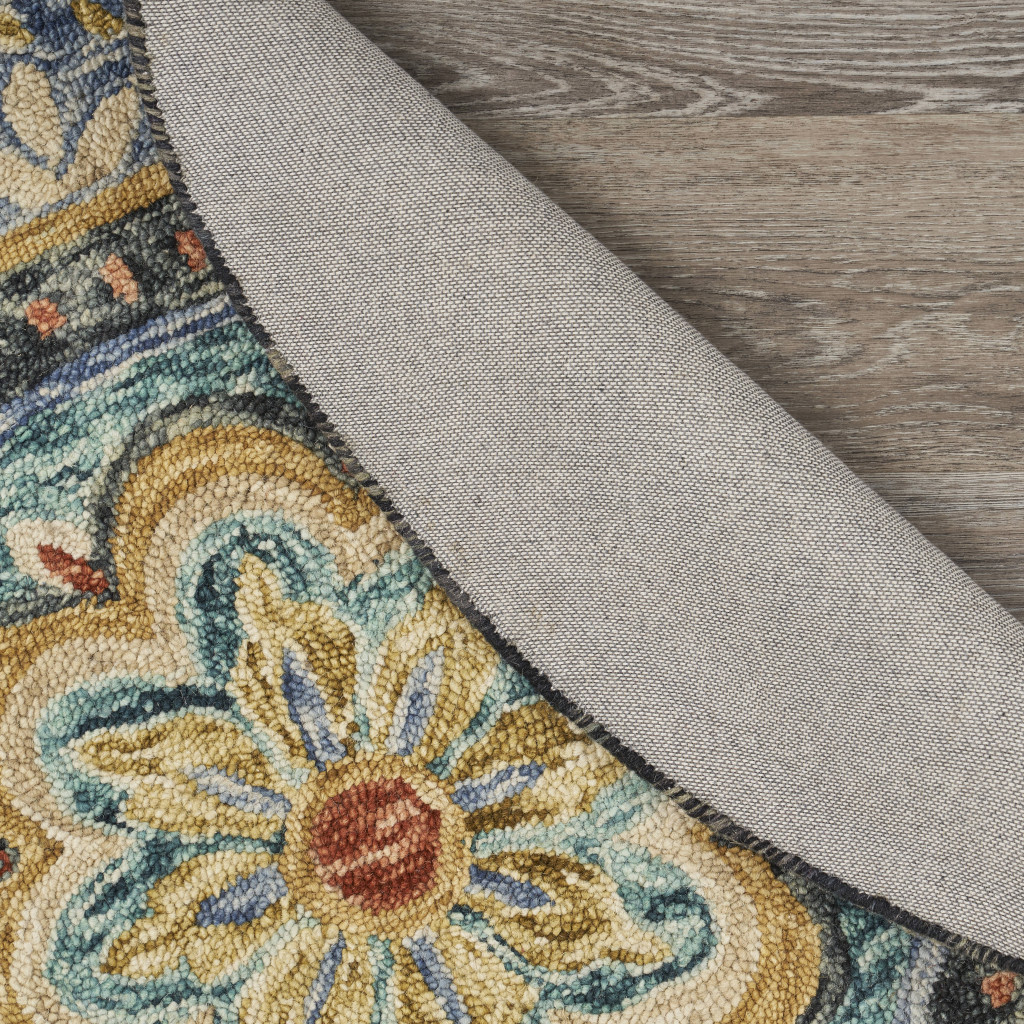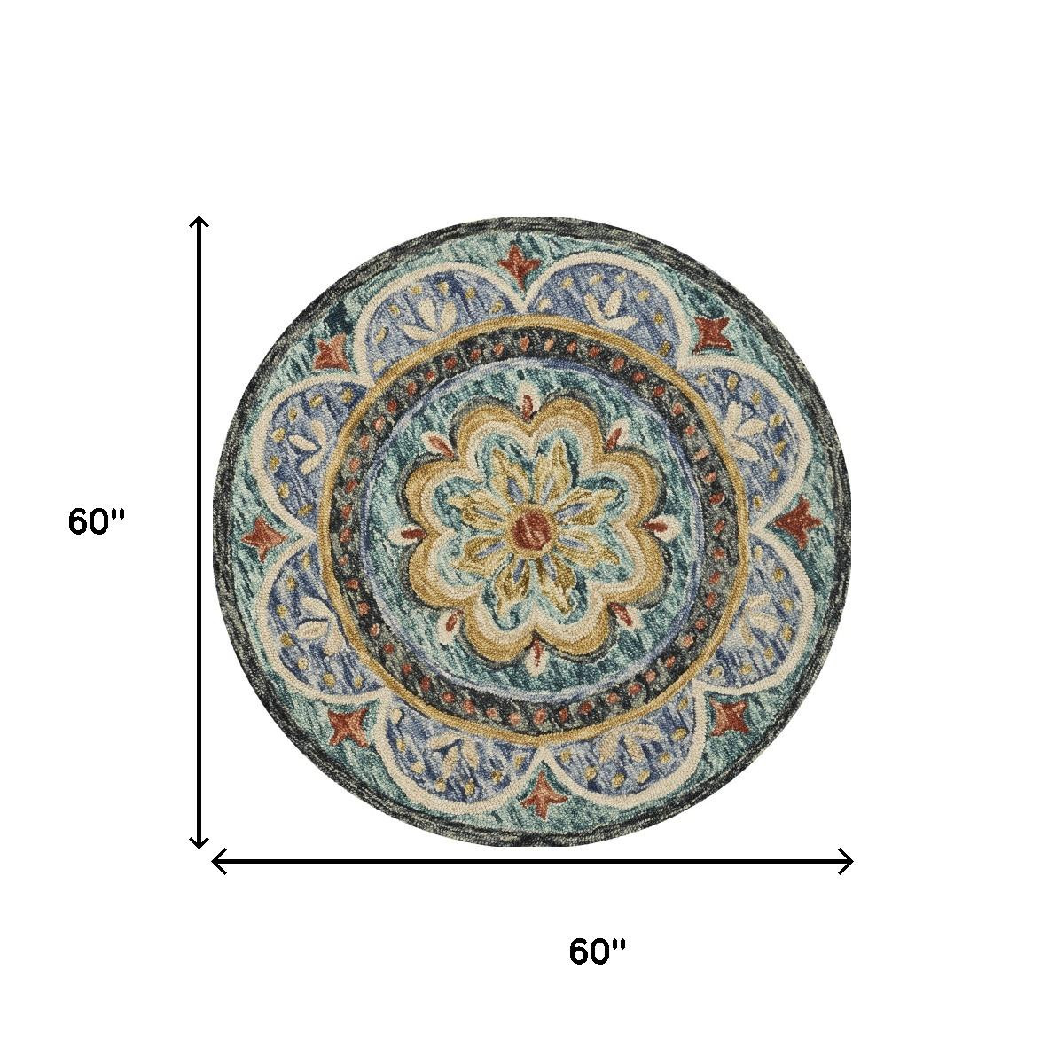 Add great coloration and comfortable texture to your space with this 5-foot blue and black wool medallion hand tufted round rug. Crafted by skilled artisans, this hand tufted rug is genuine and unique. No two will be exactly alike. Rugs are a great way to showcase your style, hide imperfections, warm your home and reduce noise. This larger sized, bohemian styled rug is ready to create a focal point or statement piece in your room. 60.00-inch h x 60.00-inch w x 0.50-inch d.