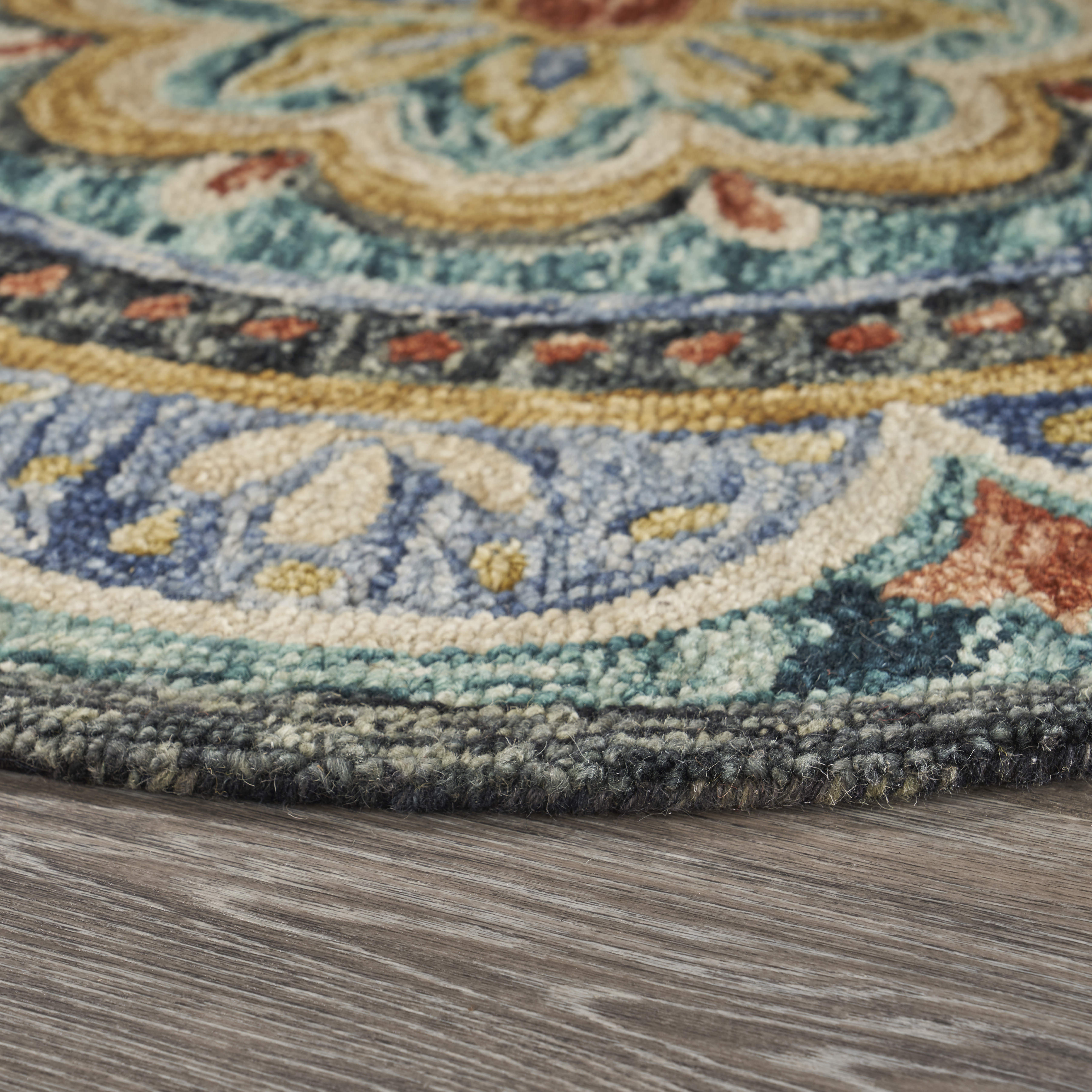 medallion hand tufted round rug, hand tufted round rug, tufted round rug, wool medallion hand tufted round, blue black wool medallion |