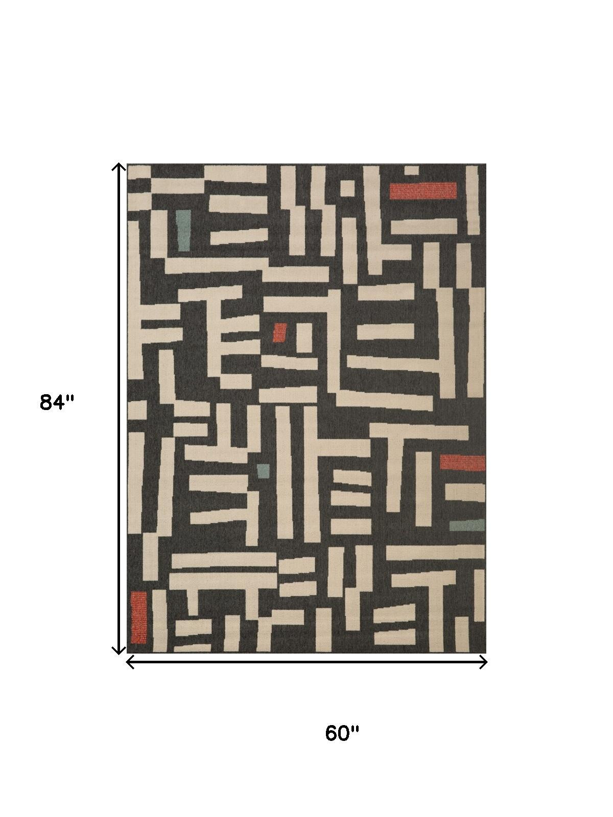 Add great coloration and comfortable texture to your space with this 5-foot x 7-foot black and ivory abstract area rug. Ideal for spaces with kids and pets, this rug is stain resistant to help repel dirt and spilled liquids. Built to last, this rug crafted from polypropylene fibers is known for its durability and long lasting appeal. Rugs are a great way to showcase your style, hide imperfections, warm your home and reduce noise. This larger sized, bohemian styled rug is ready to create a focal point or statement piece in your room. 84.00-inch h x 60.00-inch w x 0.50-inch d.