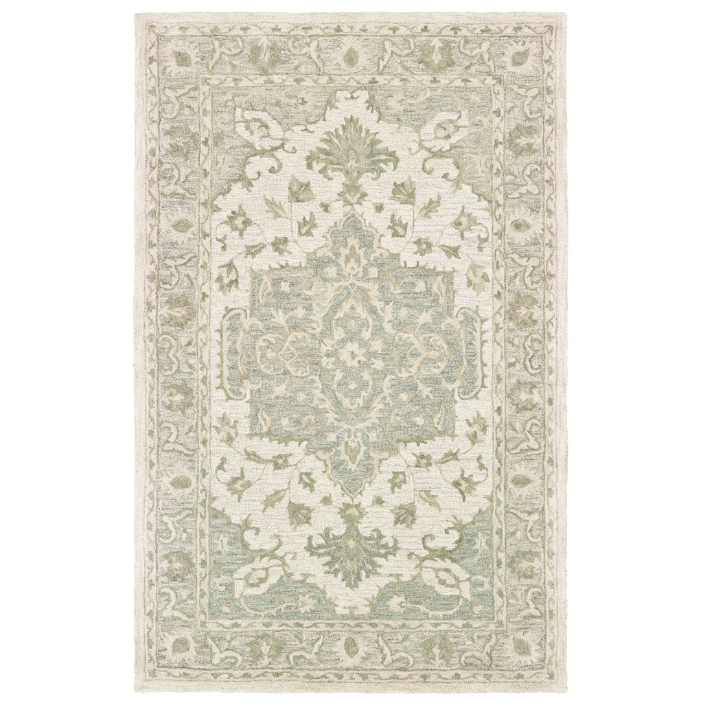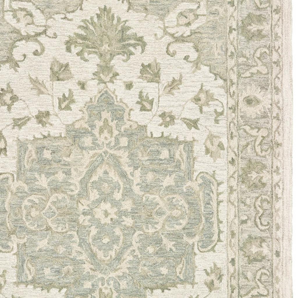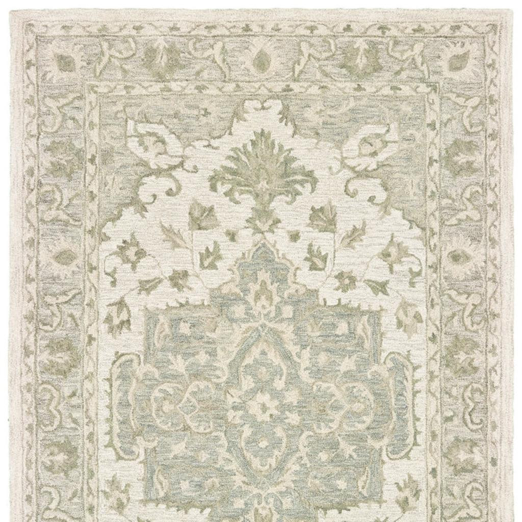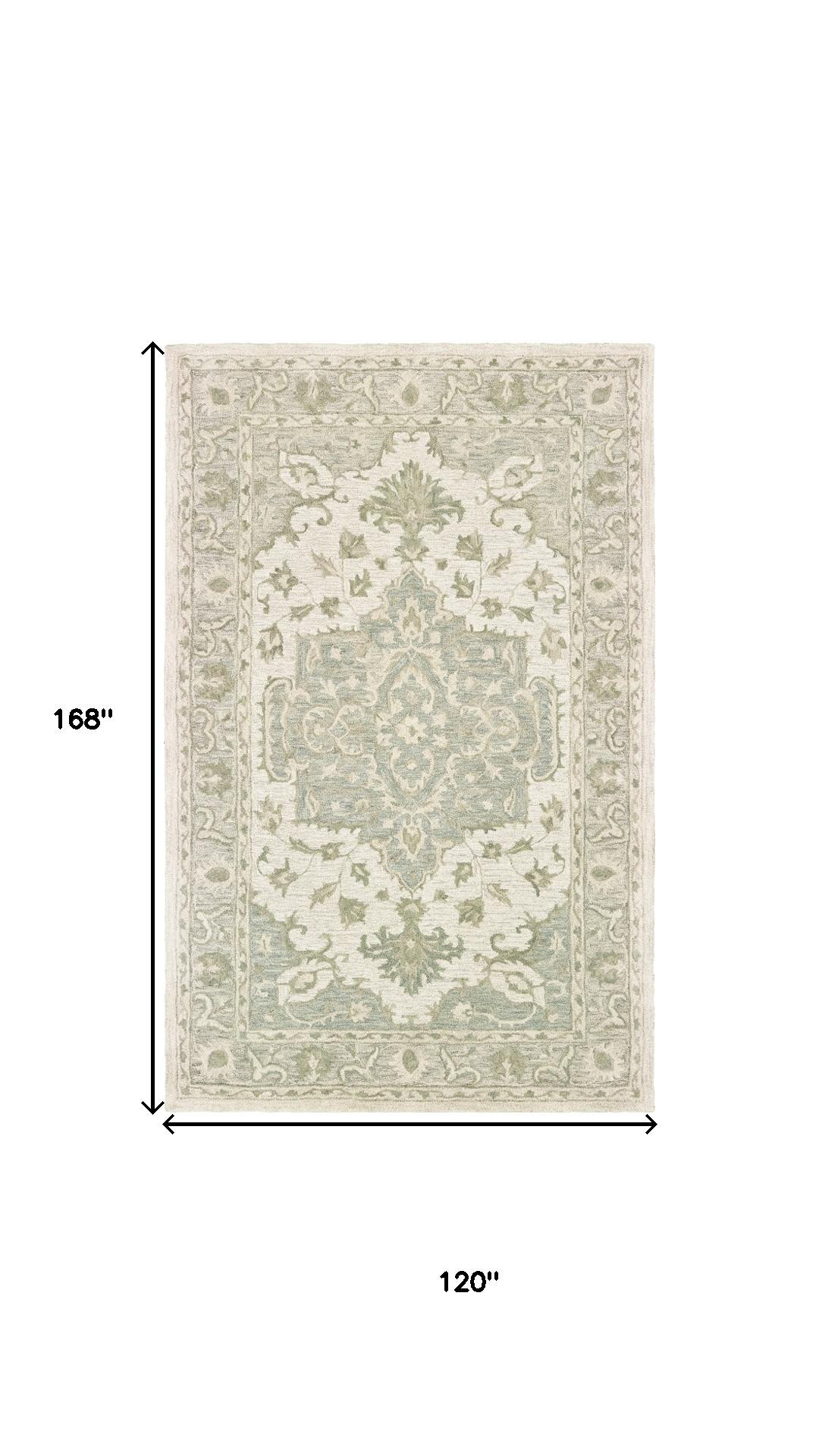 Add some artistry to your room with this 10-foot x 14-foot sea green and gray wool medallion hand tufted area rug. Crafted by skilled artisans, this hand tufted rug is genuine and unique. No two will be exactly alike. Rugs are a great way to showcase your style, hide imperfections, warm your home and reduce noise. This larger sized, traditional styled rug is ready to create a focal point or statement piece in your room. 168.00-inch h x 120.00-inch w x 0.50-inch d.