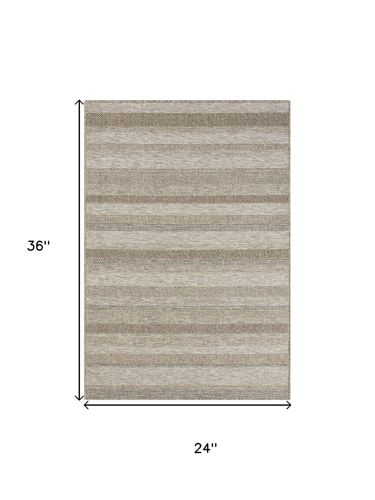 Add some artistry to your room with this 2-foot x 3-foot tan and brown striped area rug. Ideal for spaces with kids and pets, this rug is stain resistant to help repel dirt and spilled liquids. Built to last, this rug crafted from polypropylene fibers is known for its durability and long lasting appeal. Rugs are a great way to showcase your style, hide imperfections, warm your home and reduce noise. This smaller sized, transitional styled rug is just what you need for your walkway, bedside, in front of door, cabinet, refrigerator, or chair. 36.00-inch h x 24.00-inch w x 0.27-inch d.