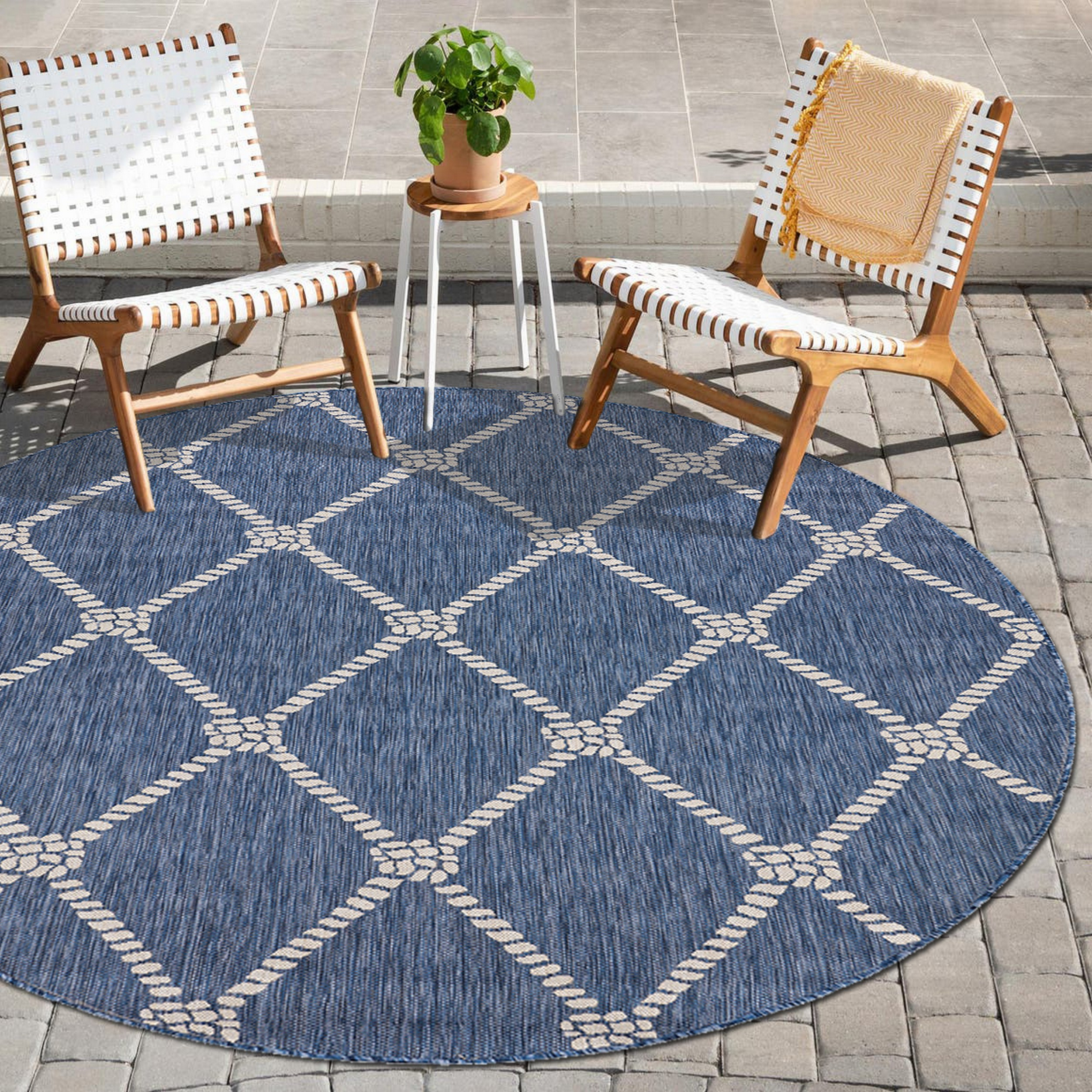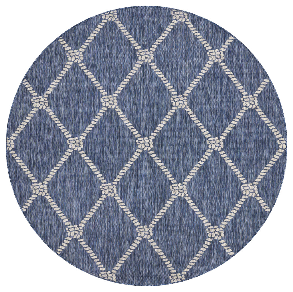 This 5-foot navy blue and white checkered round rug, is a great way to add warmth to a room. Ideal for spaces with kids and pets, this rug is stain resistant to help repel dirt and spilled liquids. Built to last, this rug crafted from polypropylene blend fibers is known for its durability and long lasting appeal. Rugs are a great way to showcase your style, hide imperfections, warm your home and reduce noise. This larger sized, coastal styled rug is ready to create a focal point or statement piece in your room. 63.00-inch h x 63.00-inch w x 0.35-inch d.
