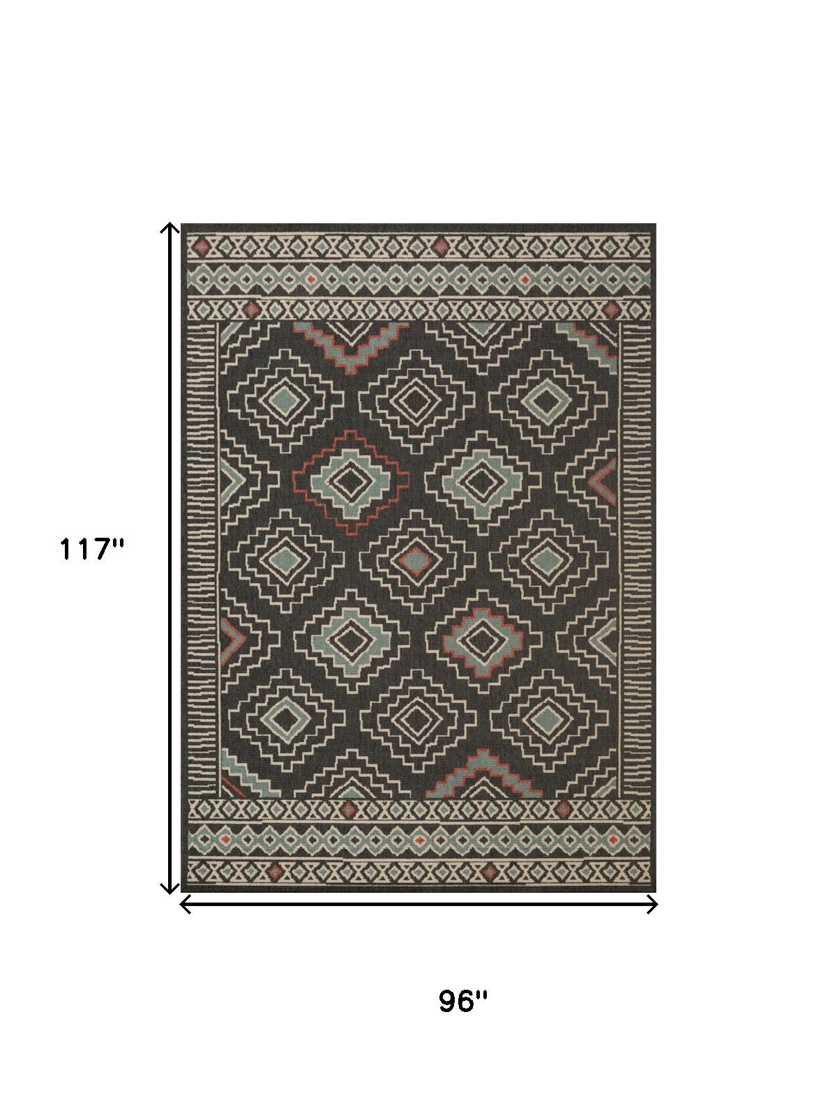 Add some artistry to your room with this 8-foot x 10-foot black and beige geometric area rug. Ideal for spaces with kids and pets, this rug is stain resistant to help repel dirt and spilled liquids. Built to last, this rug crafted from polypropylene fibers is known for its durability and long lasting appeal. Rugs are a great way to showcase your style, hide imperfections, warm your home and reduce noise. This larger sized, bohemian styled rug is ready to create a focal point or statement piece in your room. 117.00-inch h x 96.00-inch w x 0.50-inch d.