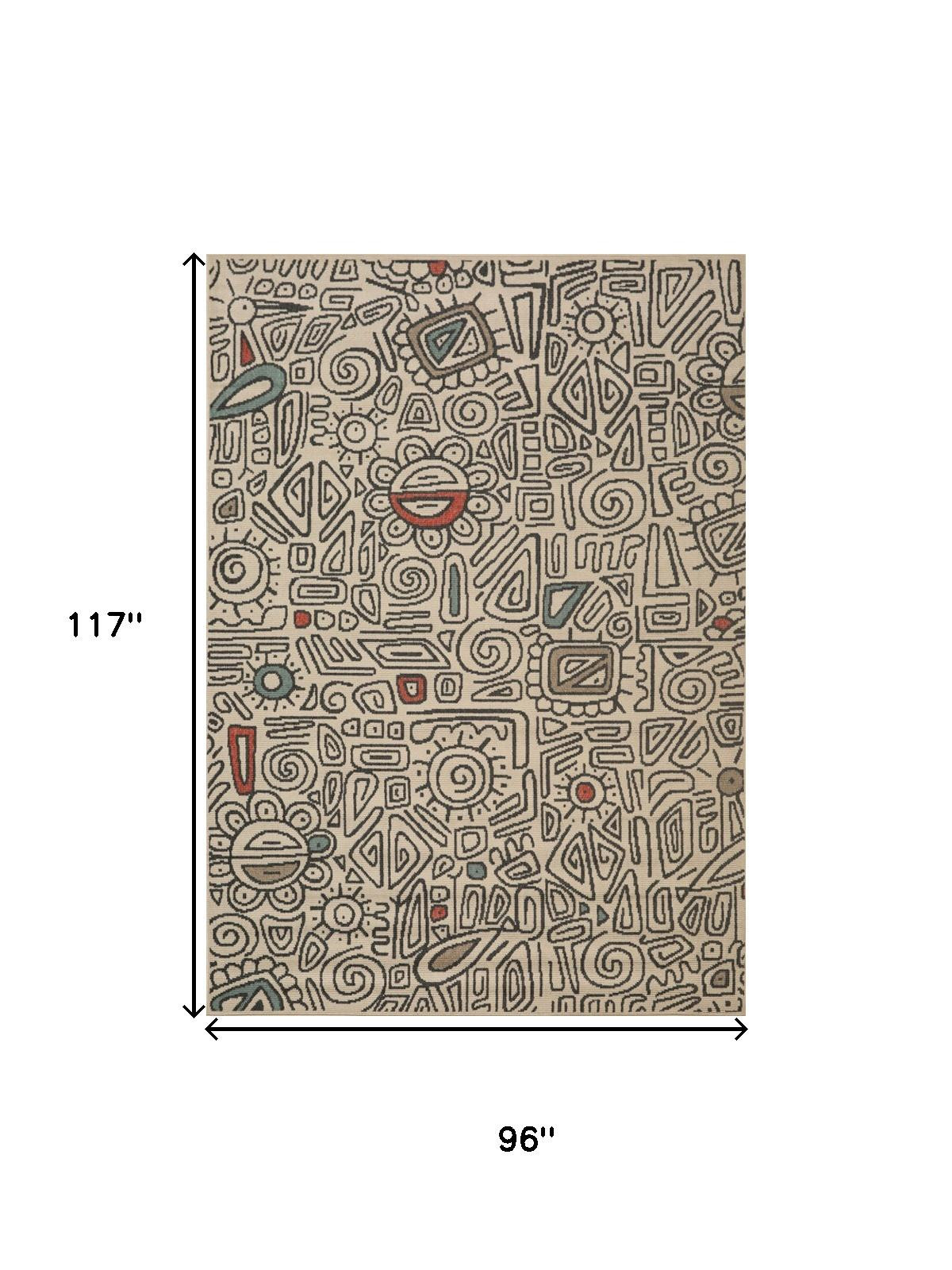 Add some artistry to your room with this 8-foot x 10-foot beige and black abstract area rug. Ideal for spaces with kids and pets, this rug is stain resistant to help repel dirt and spilled liquids. Built to last, this rug crafted from polypropylene fibers is known for its durability and long lasting appeal. Rugs are a great way to showcase your style, hide imperfections, warm your home and reduce noise. This larger sized, bohemian styled rug is ready to create a focal point or statement piece in your room. 117.00-inch h x 96.00-inch w x 0.50-inch d.