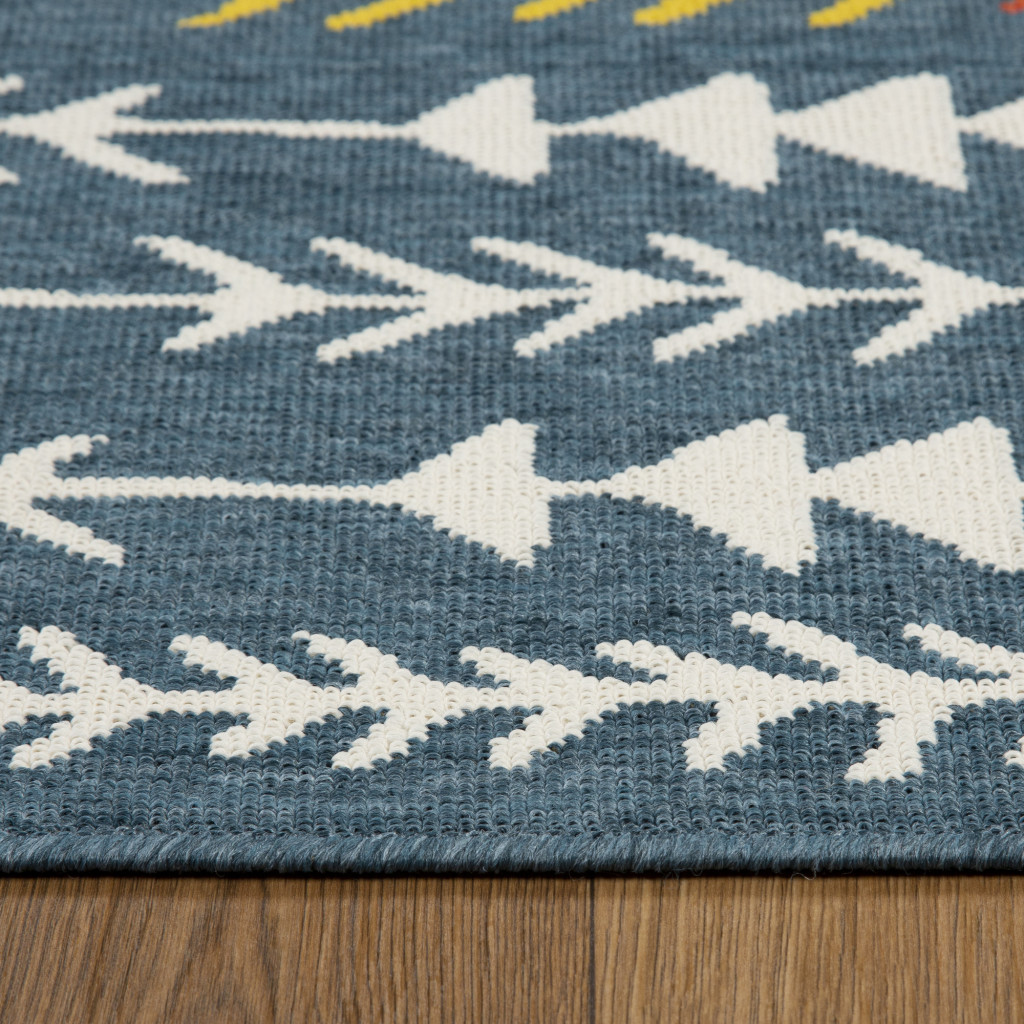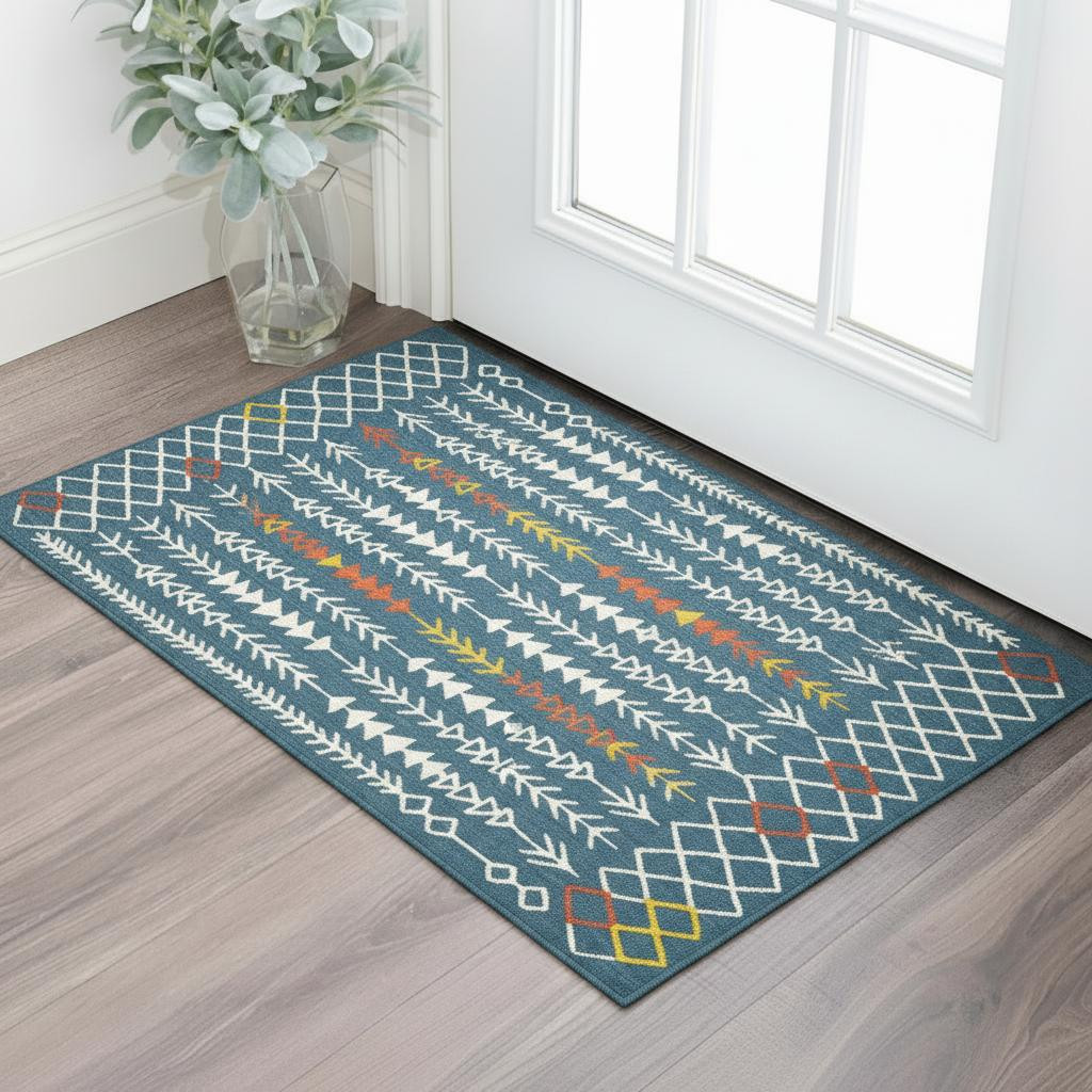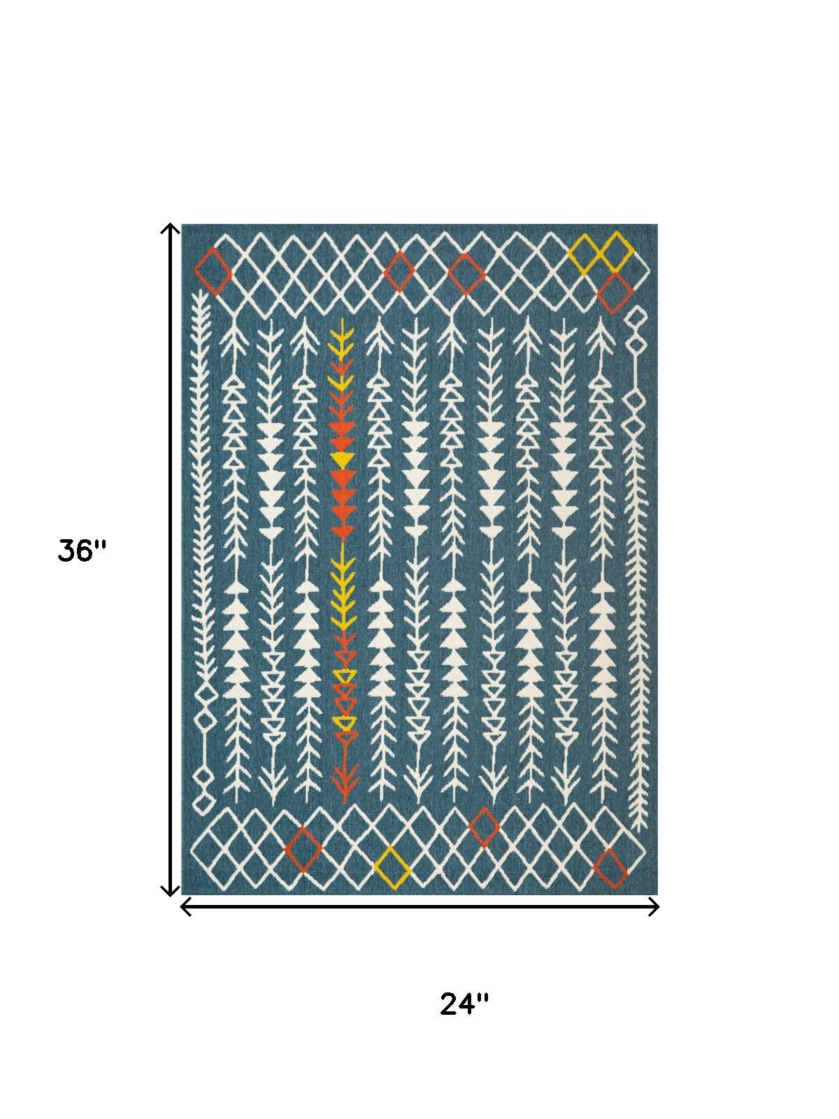 Set an inviting tone in your space with this 2-foot x 3-foot blue and ivory geometric area rug. Ideal for spaces with kids and pets, this rug is stain resistant to help repel dirt and spilled liquids. Built to last, this rug crafted from polypropylene fibers is known for its durability and long lasting appeal. Rugs are a great way to showcase your style, hide imperfections, warm your home and reduce noise. This smaller sized, bohemian styled rug is just what you need for your walkway, bedside, in front of door, cabinet, refrigerator, or chair. 36.00-inch h x 24.00-inch w x 0.50-inch d.