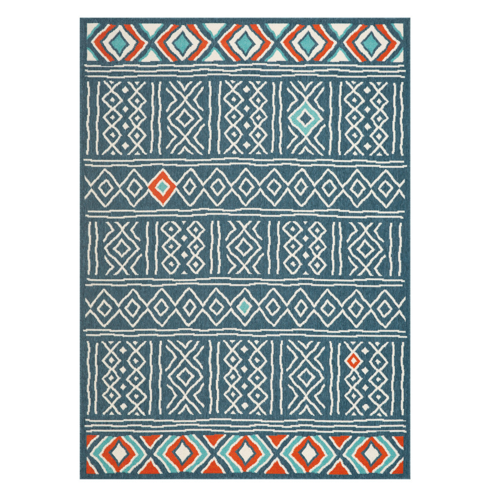 Set an inviting tone in your space with this 2-foot x 3-foot blue and ivory geometric area rug. Ideal for spaces with kids and pets, this rug is stain resistant to help repel dirt and spilled liquids. Built to last, this rug crafted from polypropylene fibers is known for its durability and long lasting appeal. Rugs are a great way to showcase your style, hide imperfections, warm your home and reduce noise. This smaller sized, bohemian styled rug is just what you need for your walkway, bedside, in front of door, cabinet, refrigerator, or chair. 36.00-inch h x 24.00-inch w x 0.50-inch d.