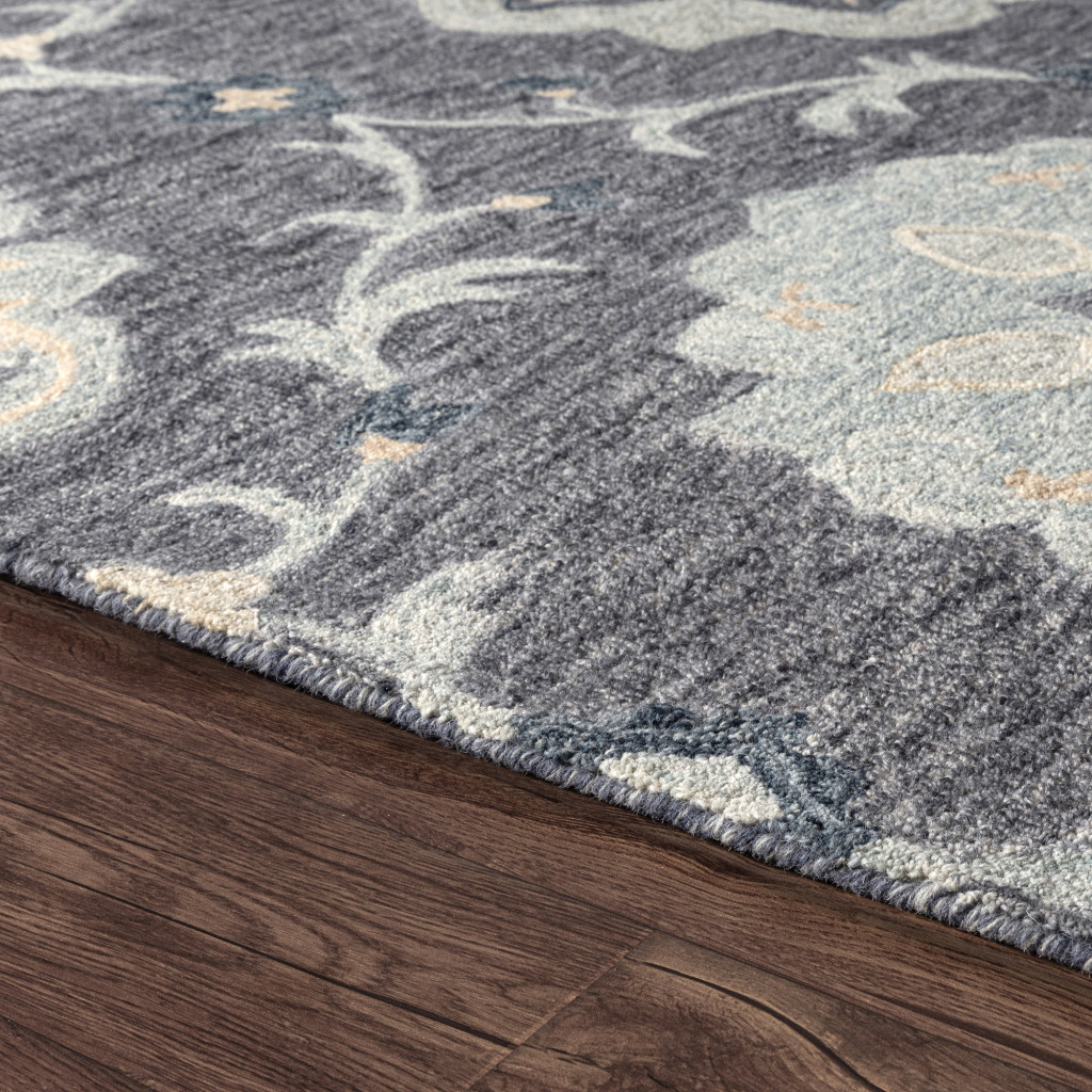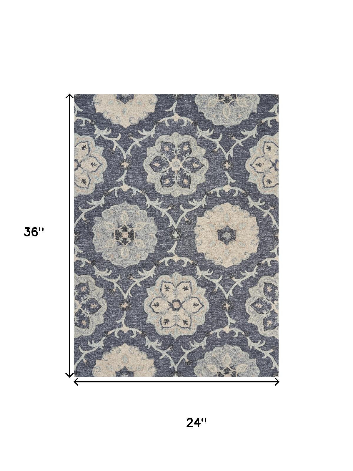 Add some artistry to your room with this 2-foot x 3-foot dark gray and blue wool floral hand tufted distressed area rug. Crafted by skilled artisans, this hand tufted rug is genuine and unique. No two will be exactly alike. Rugs are a great way to showcase your style, hide imperfections, warm your home and reduce noise. This smaller sized, traditional styled rug is just what you need for your walkway, bedside, in front of door, cabinet, refrigerator, or chair. 36.00-inch h x 24.00-inch w x 0.50-inch d.