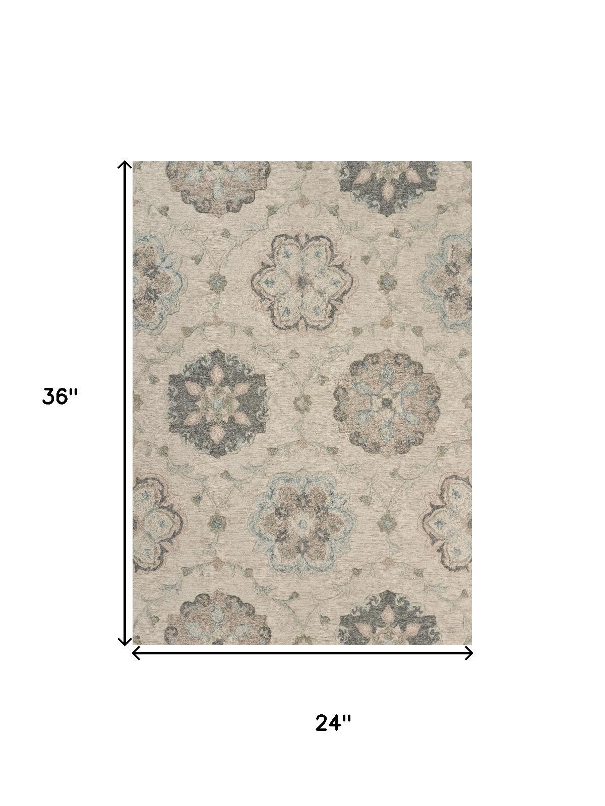 Add great coloration and comfortable texture to your space with this 2-foot x 3-foot light blue and blue wool floral hand tufted distressed area rug. Crafted by skilled artisans, this hand tufted rug is genuine and unique. No two will be exactly alike. Rugs are a great way to showcase your style, hide imperfections, warm your home and reduce noise. This smaller sized, traditional styled rug is just what you need for your walkway, bedside, in front of door, cabinet, refrigerator, or chair. 36.00-inch h x 24.00-inch w x 0.50-inch d.