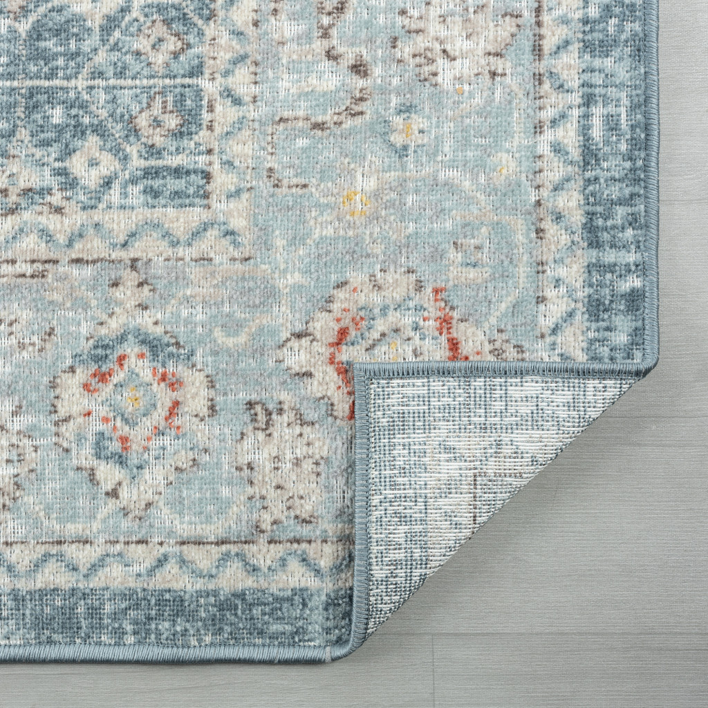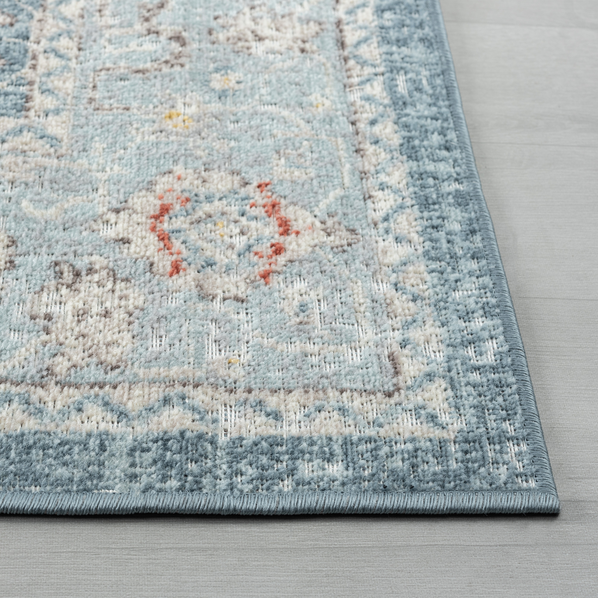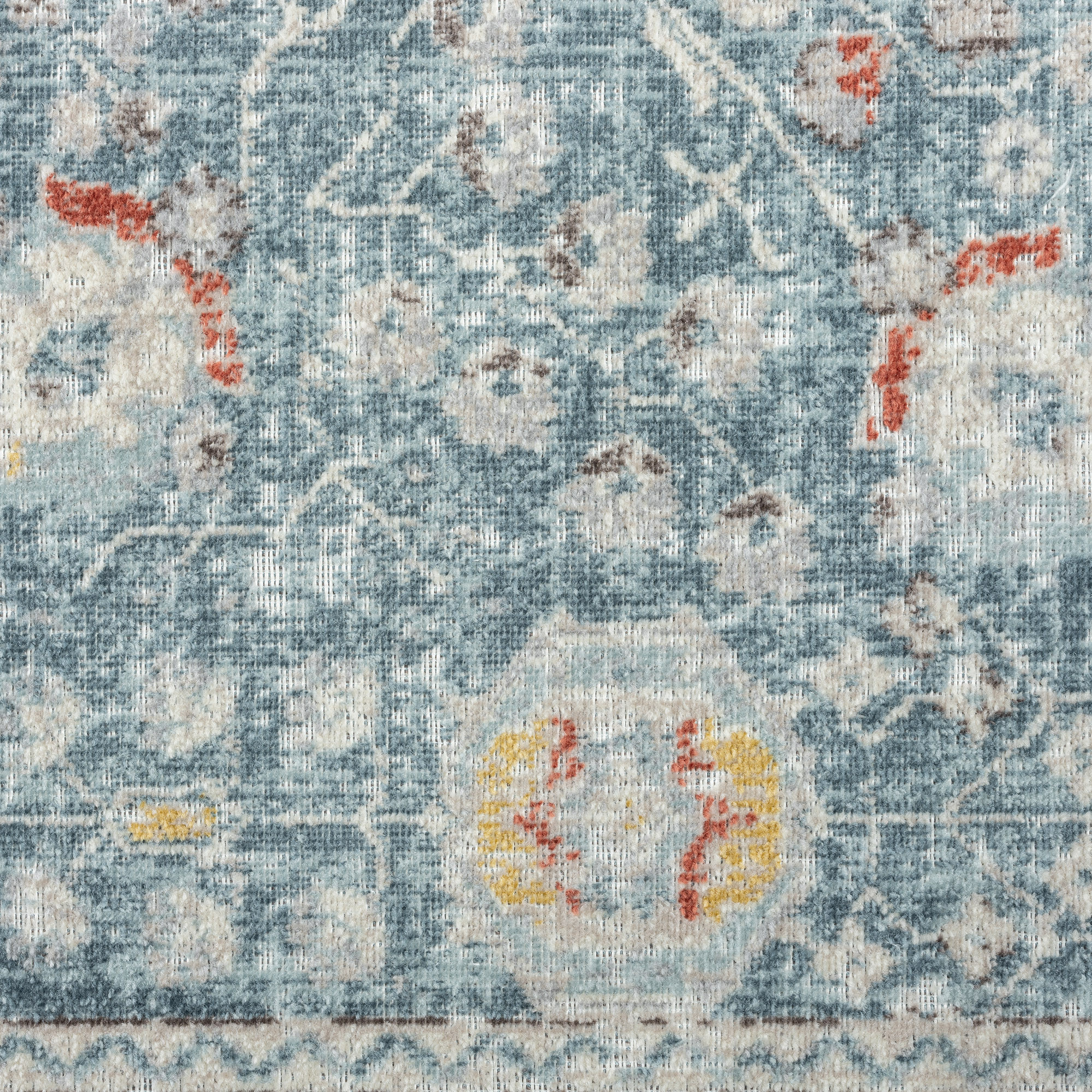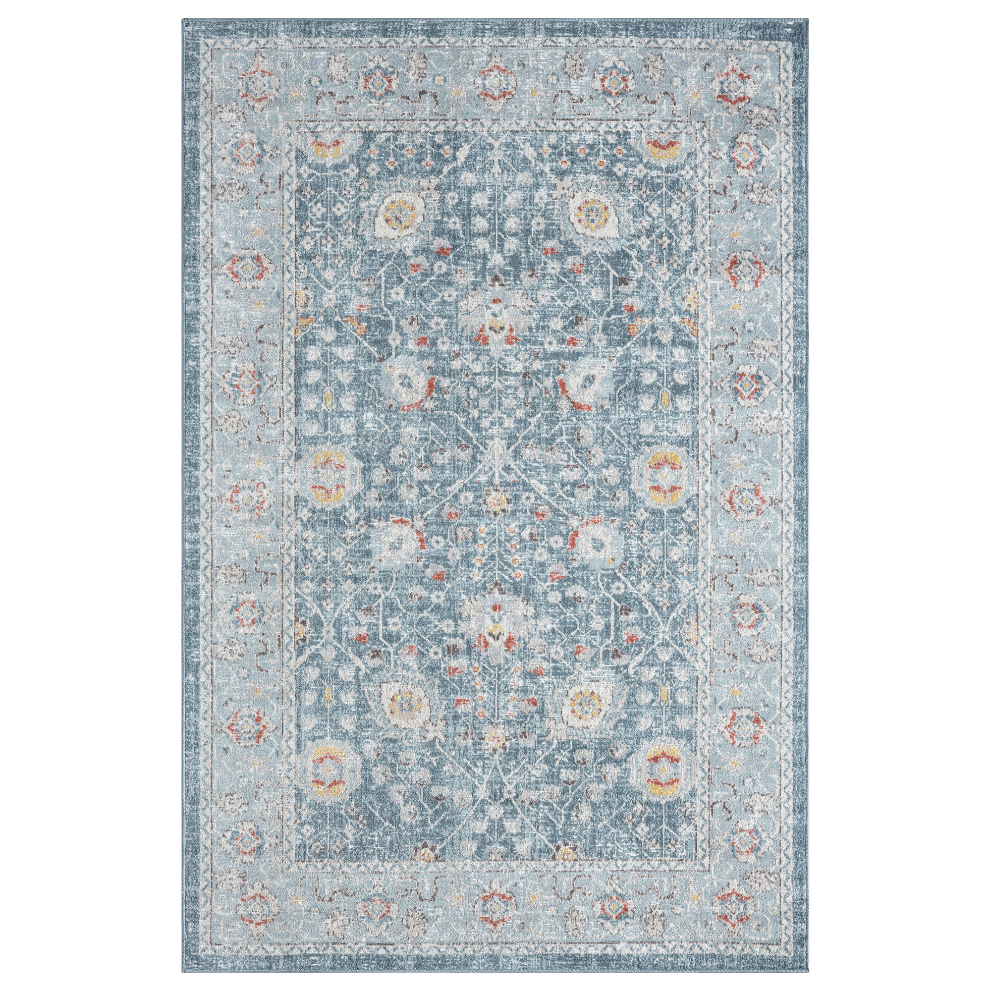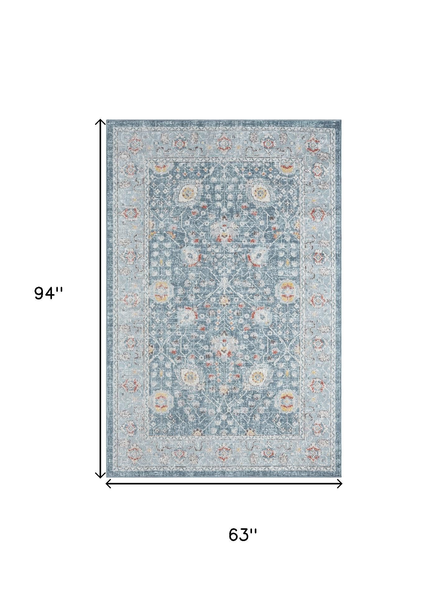 Add great coloration and comfortable texture to your space with this 5-foot x 8-foot blue and sky blue floral distressed area rug. Ideal for spaces with kids and pets, this rug is stain resistant to help repel dirt and spilled liquids. Built to last, this rug crafted from polypropylene fibers is known for its durability and long lasting appeal. Rugs are a great way to showcase your style, hide imperfections, warm your home and reduce noise. This larger sized, bohemian styled rug is ready to create a focal point or statement piece in your room. 94.00-inch h x 63.00-inch w x 1.00-inch d.