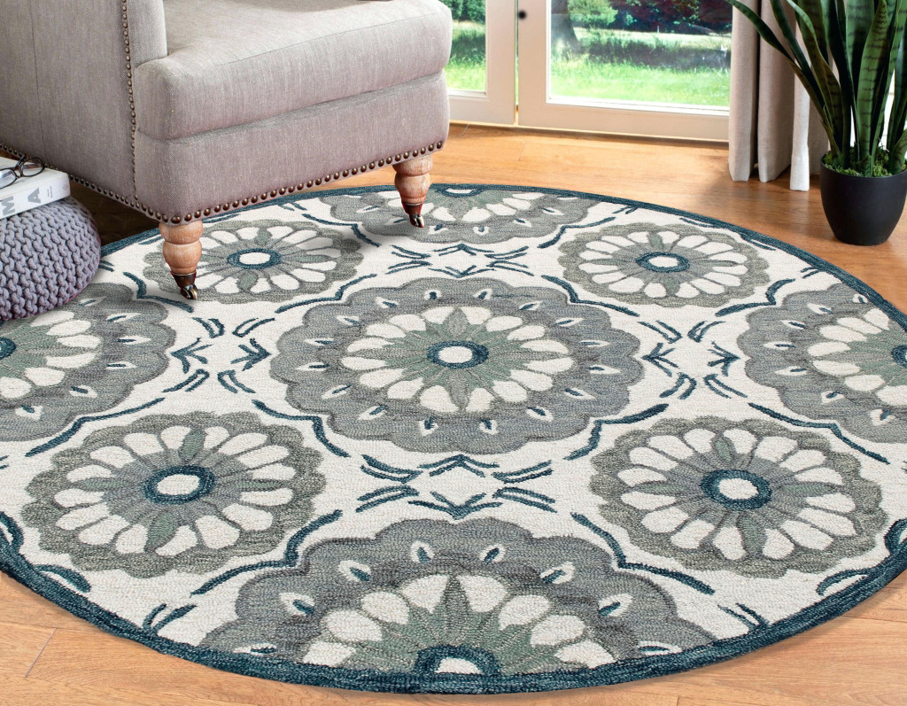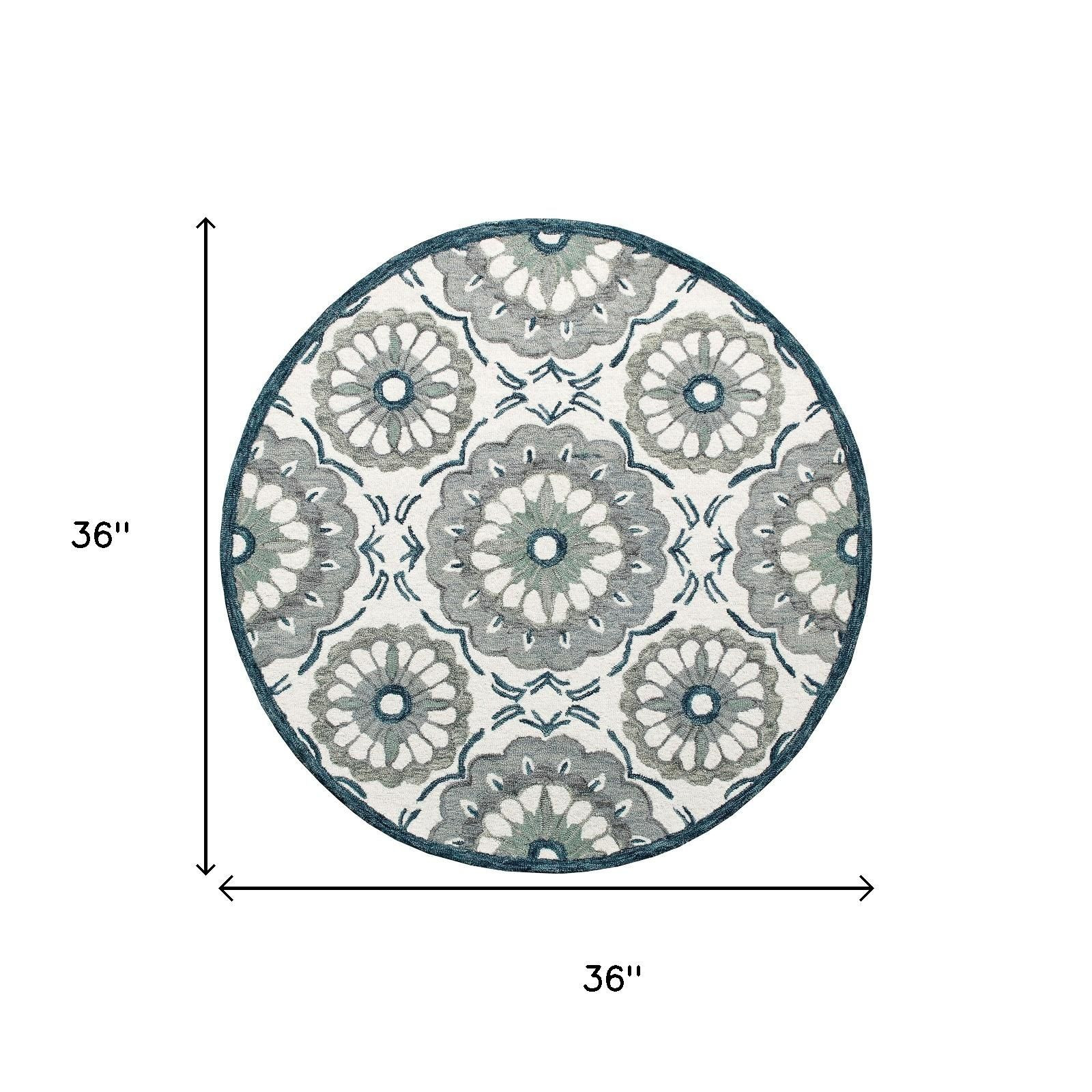 Add some artistry to your room with this 3-foot gray and slate gray wool medallion hand tufted round rug. Crafted by skilled artisans, this hand tufted rug is genuine and unique. No two will be exactly alike. Rugs are a great way to showcase your style, hide imperfections, warm your home and reduce noise. This smaller sized, rustic styled rug is just what you need for your walkway, bedside, in front of door, cabinet, refrigerator, or chair. 36.00-inch h x 36.00-inch w x 0.19-inch d.