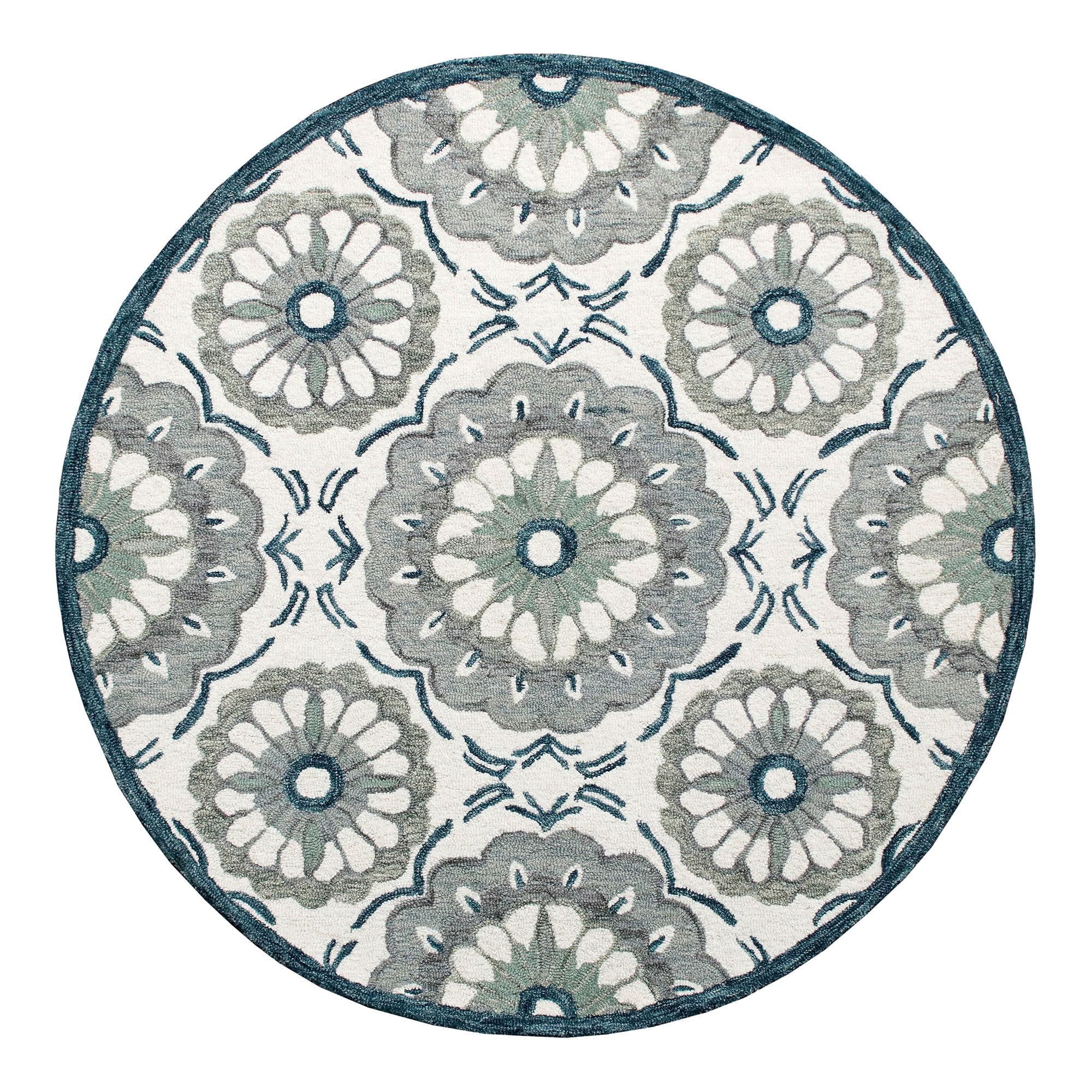 medallion hand tufted round rug, hand tufted round rug, tufted round rug, gray wool medallion hand tufted, slate gray wool medallion |