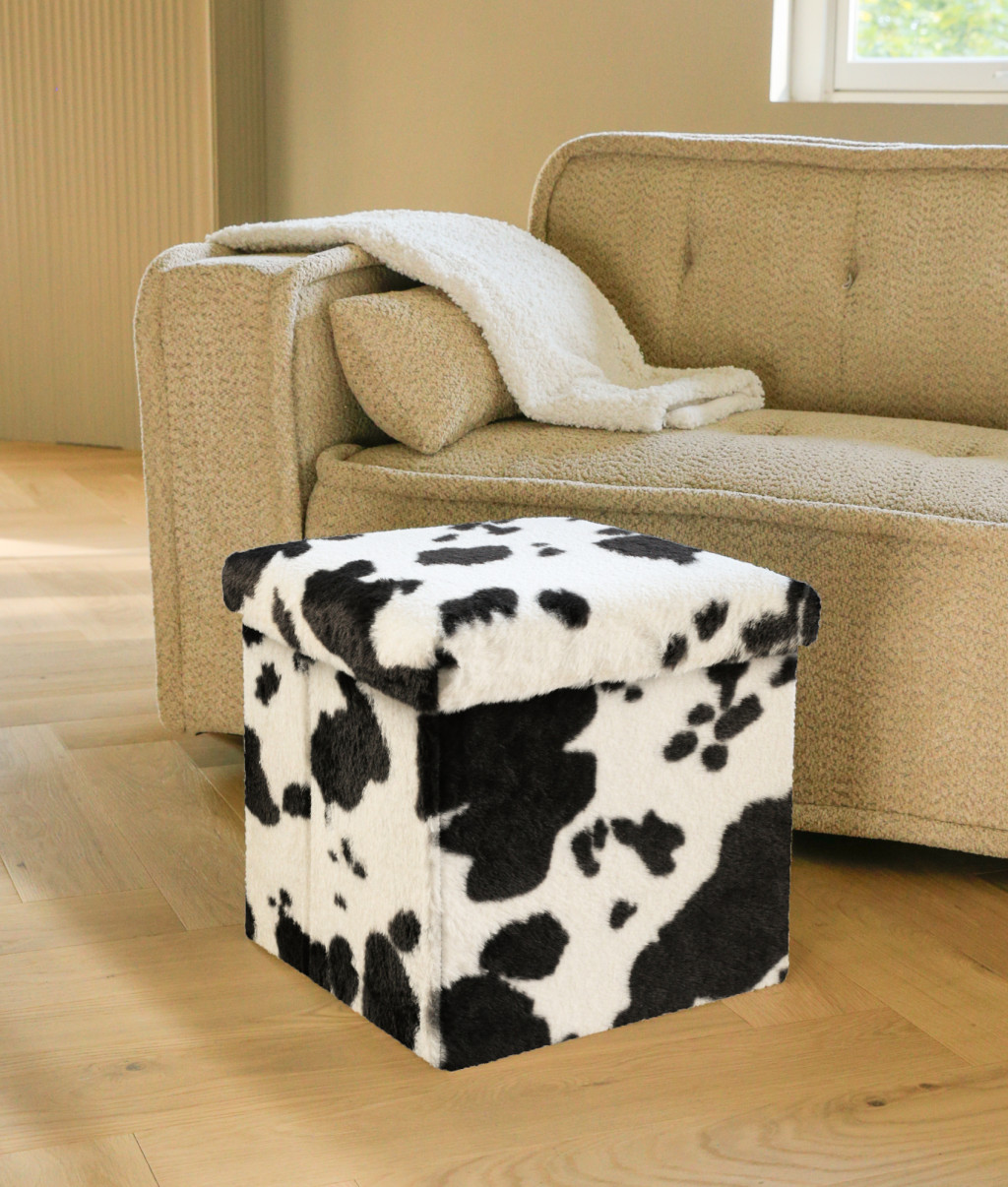 plastic cow print storage ottoman, cow print storage ottoman, 15" plastic cow print storage, print storage ottoman, plastic cow print storage |