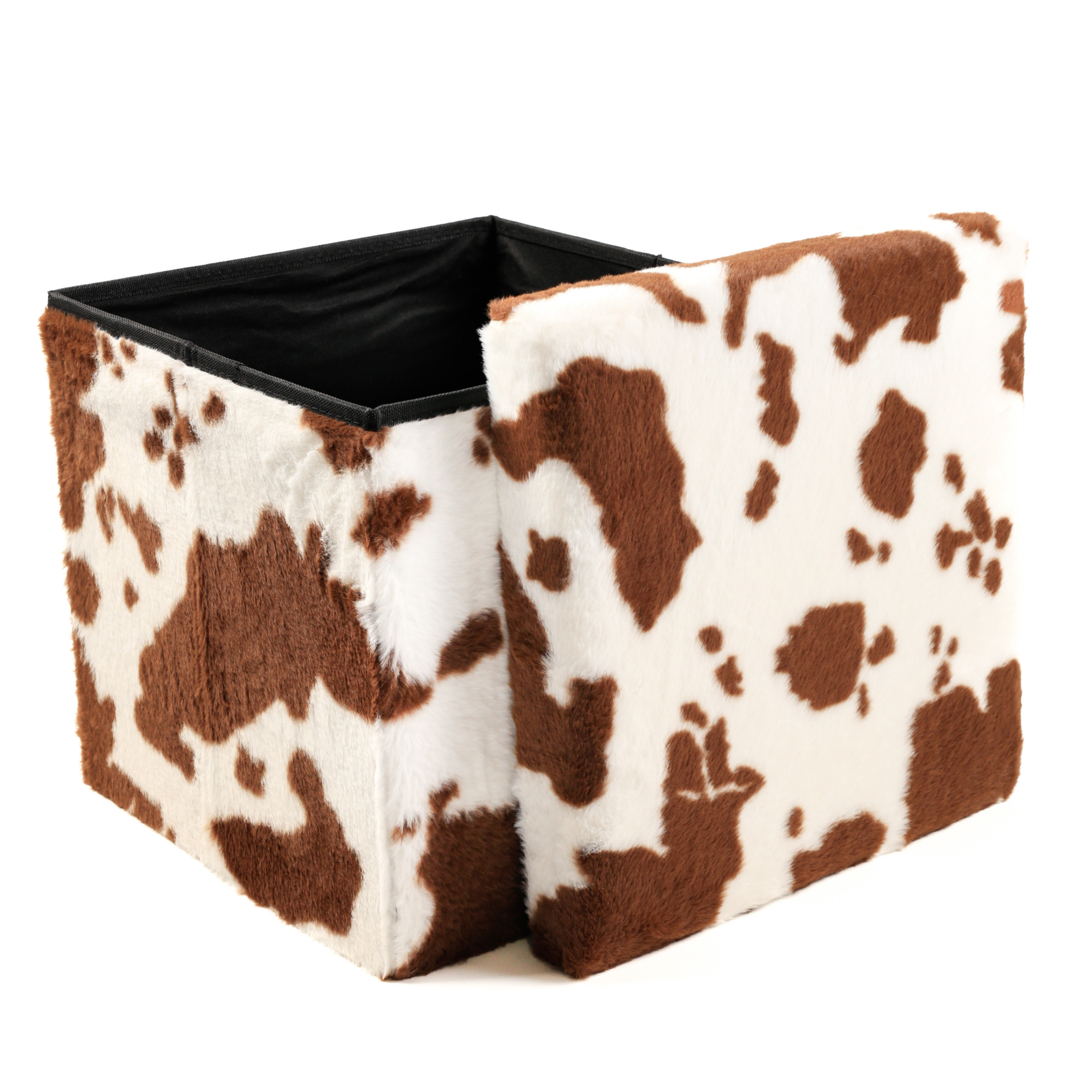 Get ready to relax with this 15-inch plastic cow print storage ottoman. Designed to discretely add hidden storage to your room without sacrificing seating or foot rest space. Easy to blend into most any room, a ottoman is a way to add a good looking accent to your space that can also be practical and useful. 15.00-inch h x 15.00-inch w x 15.00-inch d.