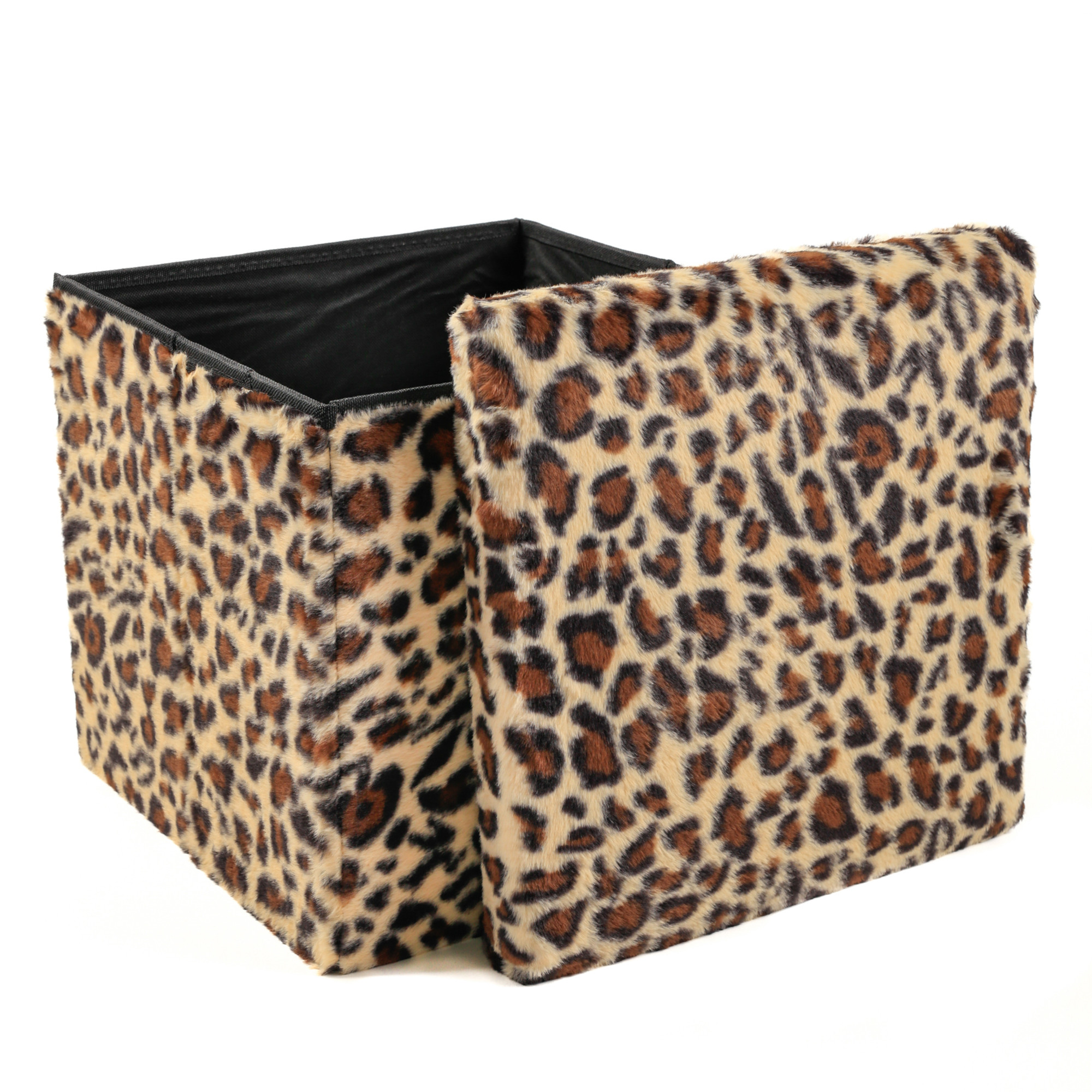 Practicality and fashion mix together with this handy 15-inch plastic animal print storage ottoman. Designed to discretely add hidden storage to your room without sacrificing seating or foot rest space. Ottomans are multi-functional additions to your space that add fashion and practical value. 15.00-inch h x 15.00-inch w x 15.00-inch d.
