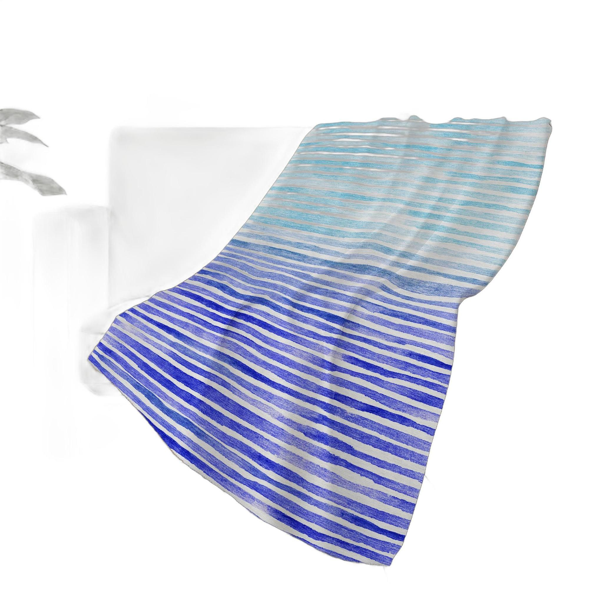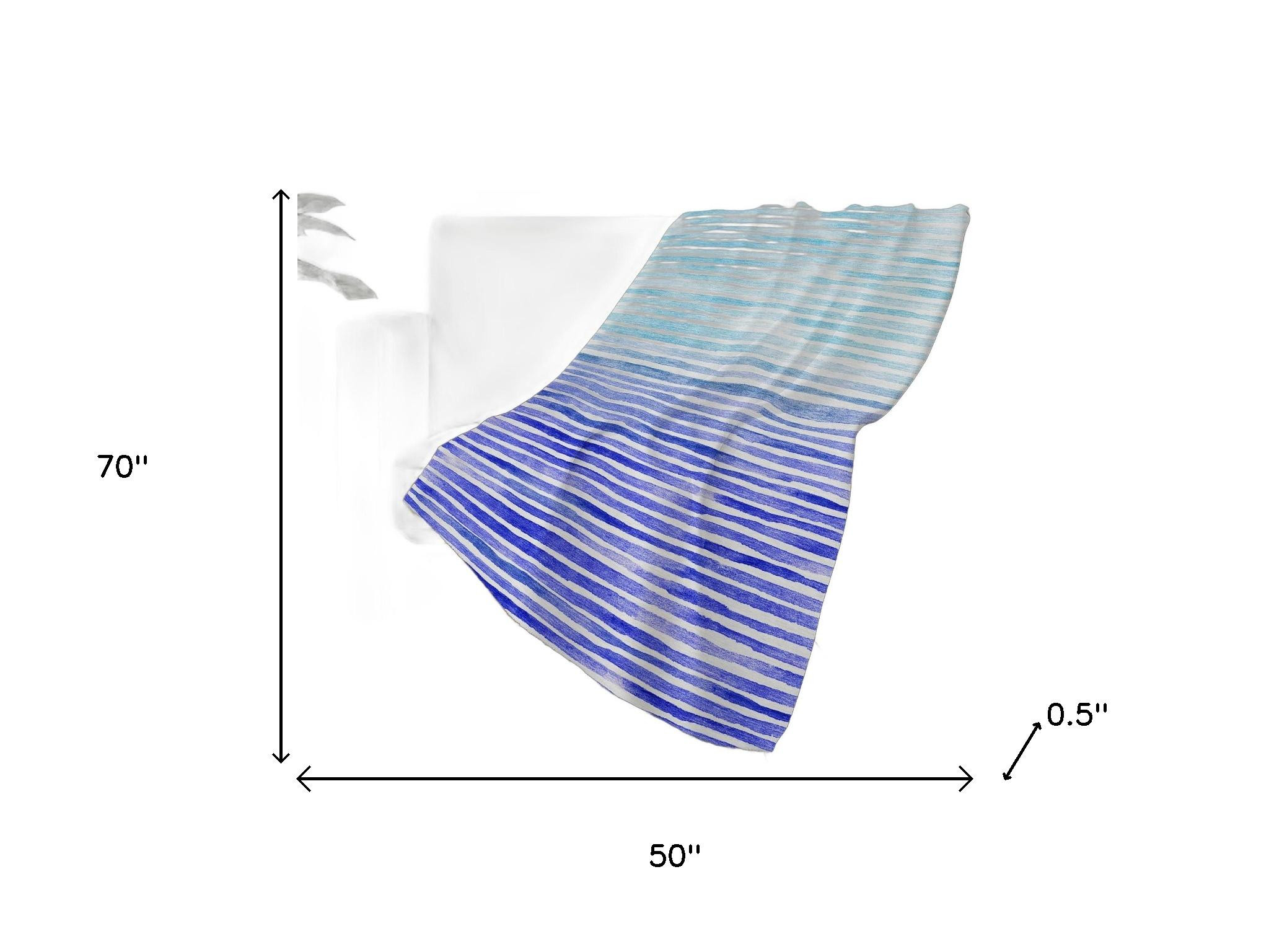 This 50-inch x 70-inch blue and ivory striped polyester woven plush throw blanket is the best (and most stylish) way to wrap you and your loved ones in the epitome of cozy all year long. This plush throw is cozy soft beyond belief and oh-so-giftable. Features a woven striped design that offers sumptuous softness and texture that you'll cherish for years to come. Made from polyester this blanket will make a great addition to any room it's added to. Layering your furnishings with a decorative throw has the ability to awaken a tired living room or elevate the design of your bedroom simply by providing elements of color and texture that weren't there before. Perfect for your favorite chair, bed or lounging on the couch, this blanket helps bring a warm and fashionable flair to your space. 70.00-inch h x 50.00-inch w x 0.50-inch d.