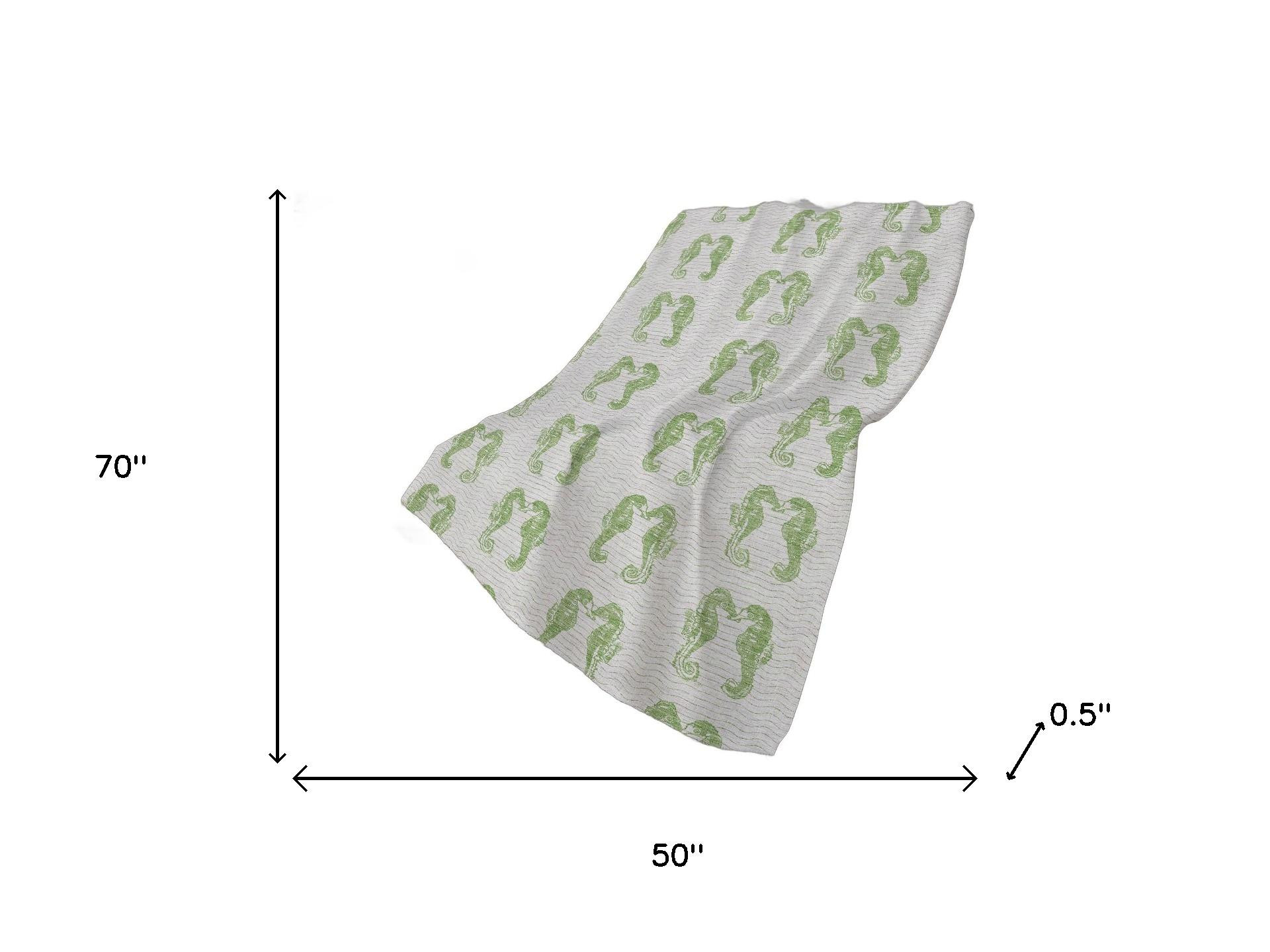 This welcoming 50-inch x 70-inch green and ivory animal print polyester woven plush throw blanket is a must-have for every sofa, chaise, and bed. This ultra-soft plush blanket is designed for ultimate softness. Features a woven animal print design that offers sumptuous softness and texture that you'll cherish for years to come. Made from polyester this blanket will make a great addition to any room it's added to. Add extra texture to your decor and turn your room into an inviting space. This cozy throw blanket is sure to become your go-to couch companion. 70.00-inch h x 50.00-inch w x 0.50-inch d.