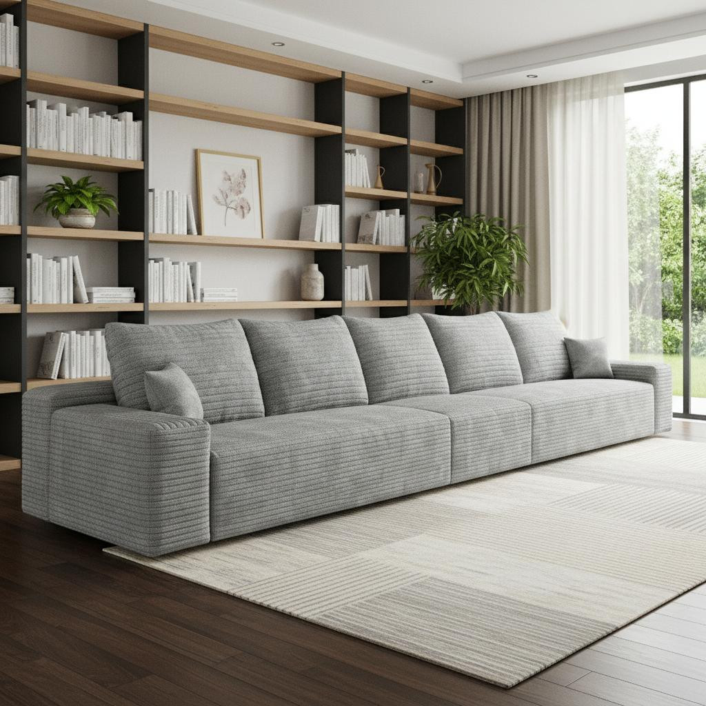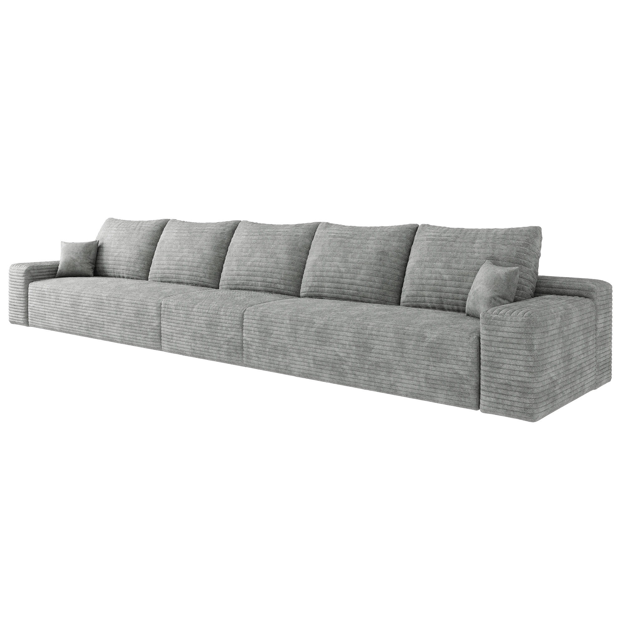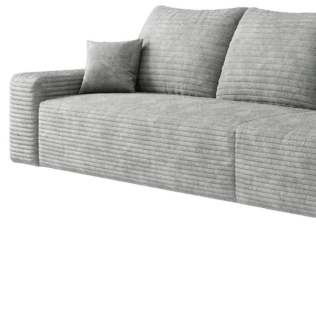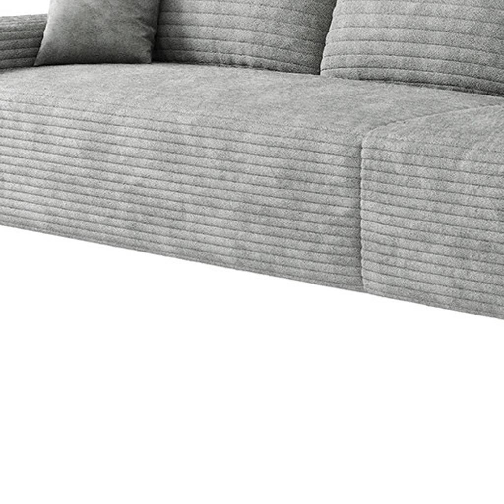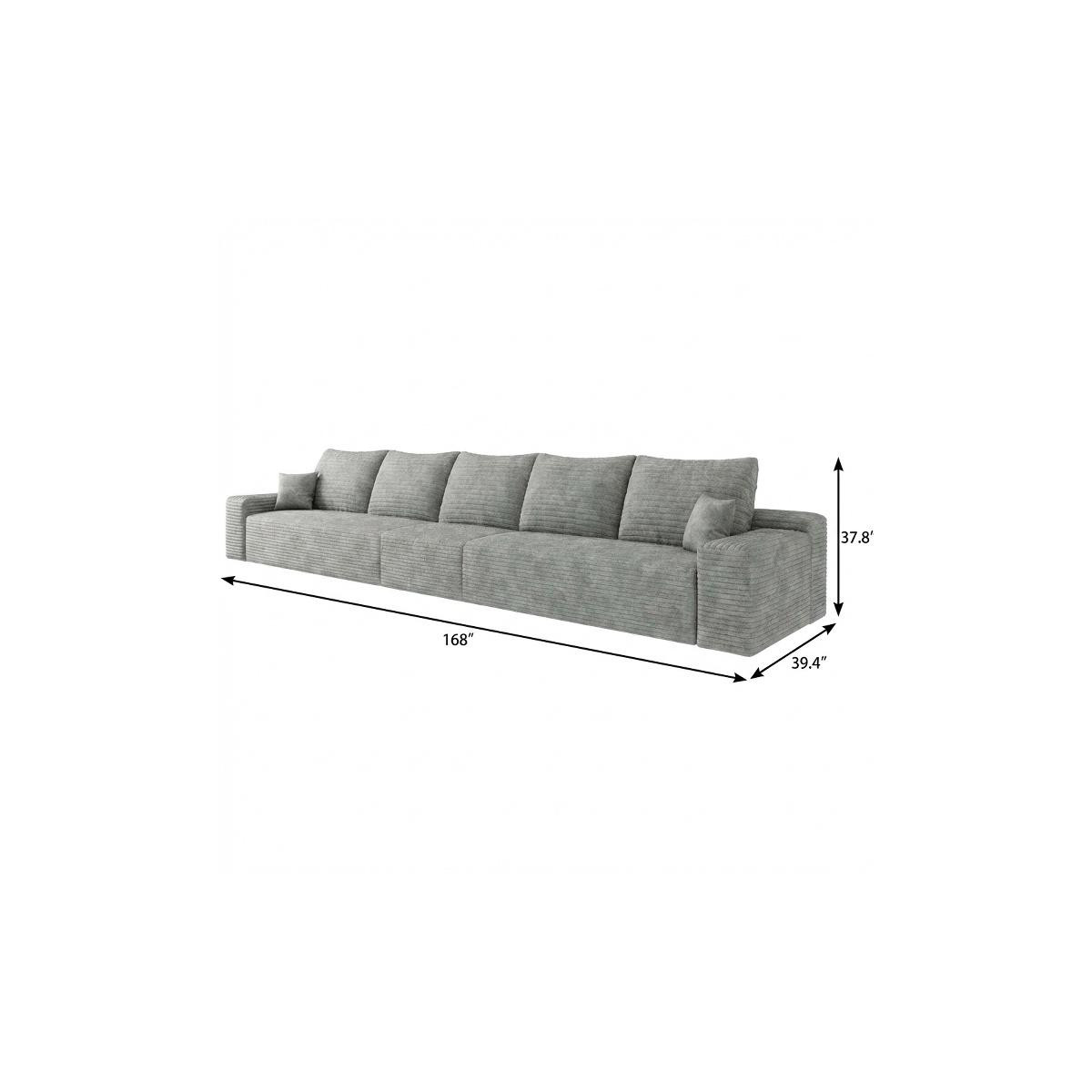 Transform your home's interior with this luxurious 168-inch gray corduroy modular compression foam sofa with toss pillows. This solid color modular is made from corduroy that is unique and gives this piece some special flair. Solid colors give you lots of decorative options and are easy to work into your decor scheme. Fixed arms offer a comfy place to rest. Built to last, this sofa will be a great centerpiece for your room. 37.80-inch h x 168.00-inch w x 39.40-inch d.