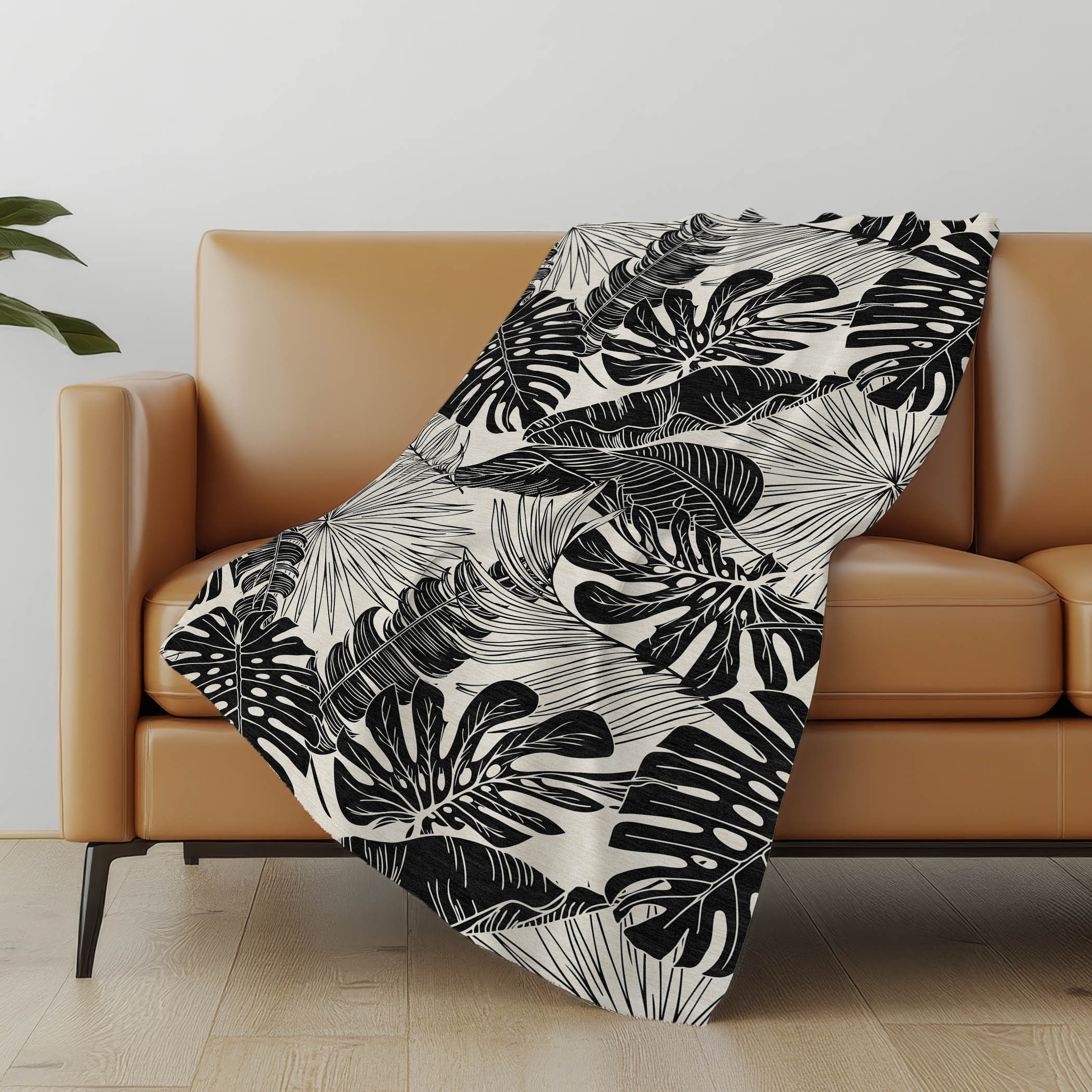 This 50-inch x 70-inch midnight and ivory leaves polyester woven plush throw blanket is the best (and most stylish) way to wrap you and your loved ones in the epitome of cozy all year long. This ultra-soft plush blanket is designed for ultimate softness. Features a woven leaves design that offers sumptuous softness and texture that you'll cherish for years to come. Made from polyester this blanket will make a great addition to any room it's added to. Add extra texture to your decor and turn your room into an inviting space. This cozy throw blanket is sure to become your go-to couch companion. 70.00-inch h x 50.00-inch w x 0.50-inch d.