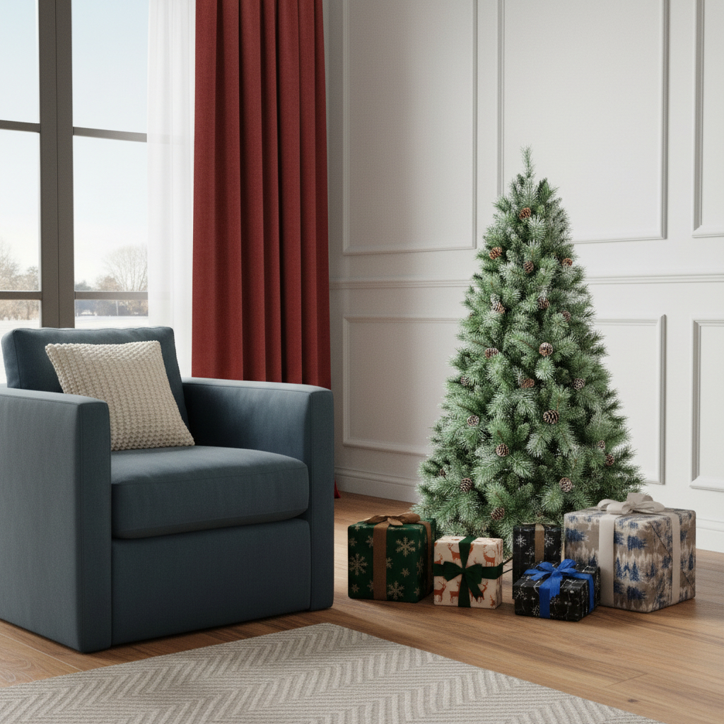 This 5-foot full pine Christmas tree with decorations is a great way to decorate and celebrate the season. Crafted from durable materials, this artificial tree boasts a 694 branch tips with pinecones and vibrant green needle color that adds a touch of rustic elegance to your holiday decor. With a regular full shape, it presents a lush and inviting appearance that enhances any space. The included tree stand ensures stability and ease of setup, allowing you to quickly enjoy its beauty. 60.00-inch h x 41.00-inch w x 41.00-inch d.
