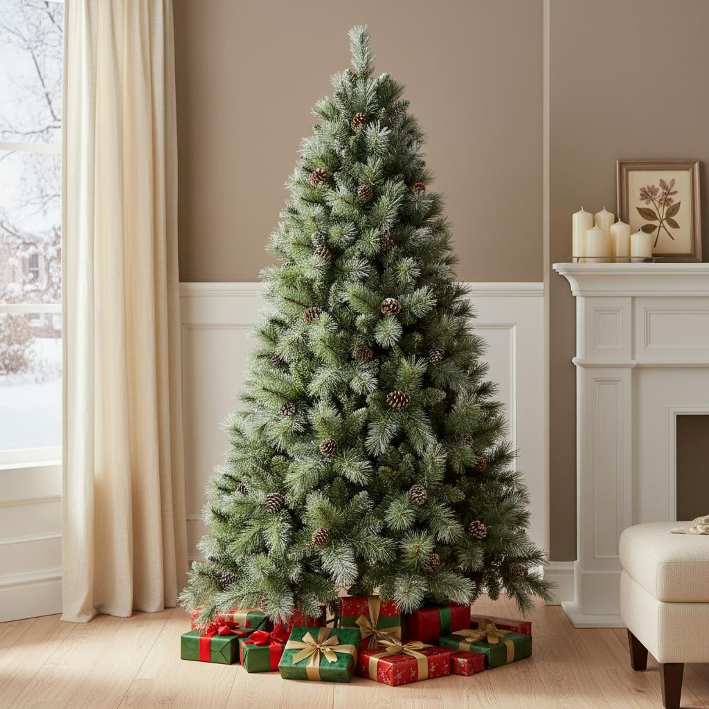 Add some festive spirit to your space with this 7-foot full pine christmas tree. This artificial tree features a lush green needle color that beautifully mimics the look of natural pine. Its regular fullness provides an ideal balance for hanging ornaments and decorations. A sturdy tree stand is included, ensuring stability and ease of setup during the holiday season. Crafted from durable polyvinyl chloride, this tree is designed to last for years, allowing you to create lasting memories each holiday. Standing at an impressive 84 inches tall, it makes a striking centerpiece, inviting warmth and joy into your home during the most wonderful time of the year. 84.00-inch h x 53.00-inch w x 53.00-inch d.