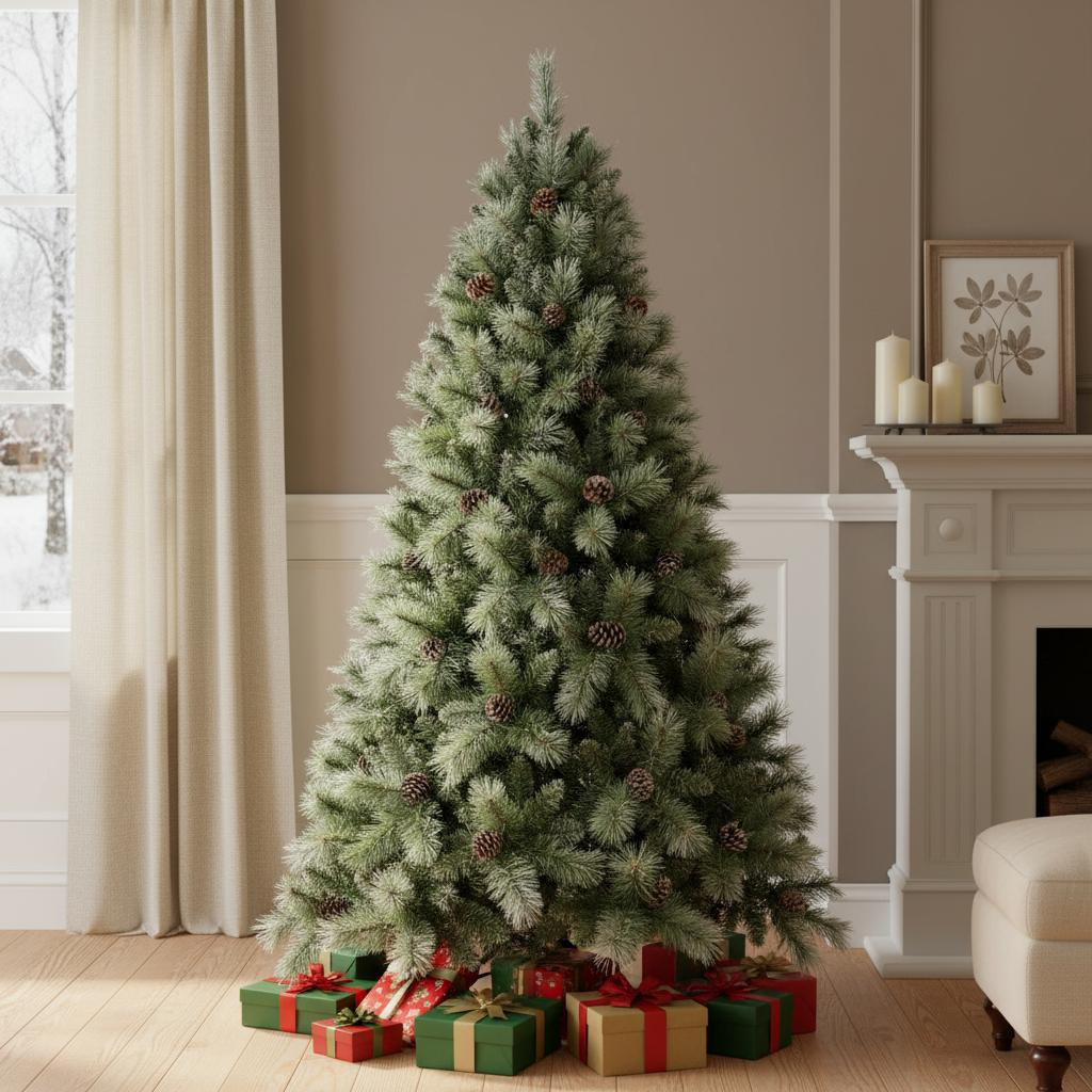 This 8-foot full pine christmas tree is a great way to decorate and celebrate the season. Designed with a regular fullness, this artificial tree creates a lush and vibrant appearance in any space. The rich green needle color enhances the festive atmosphere, making it perfect for family gatherings and holiday parties. Crafted from durable polyvinyl chloride, this tree ensures longevity and repeated use for many seasons to come. It comes with a sturdy tree stand to provide stability and support, allowing you to style it with your favorite ornaments and decorations effortlessly. Transform your home into a winter wonderland with this enchanting centerpiece. 96.00-inch h x 59.00-inch w x 59.00-inch d.