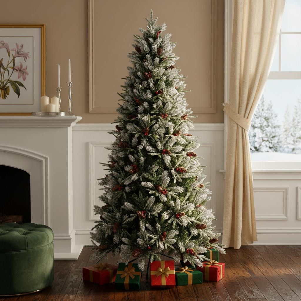 This 7-foot white full pine christmas tree is a great way to decorate and celebrate the season. Its artificial design offers a stunning visual without the maintenance of a live tree. The beautiful white needle color adds a fresh and modern touch to your holiday decor. With a regular fullness shape, it provides ample space for ornaments and lights. This tree comes complete with a sturdy tree stand for easy setup and stability. Crafted from durable polyvinyl chloride, it ensures long-lasting use for many holiday seasons. With an impressive tip count of 2,178, it creates a lush and full appearance that enhances any festive setting. 84.00-inch h x 48.00-inch w x 48.00-inch d.