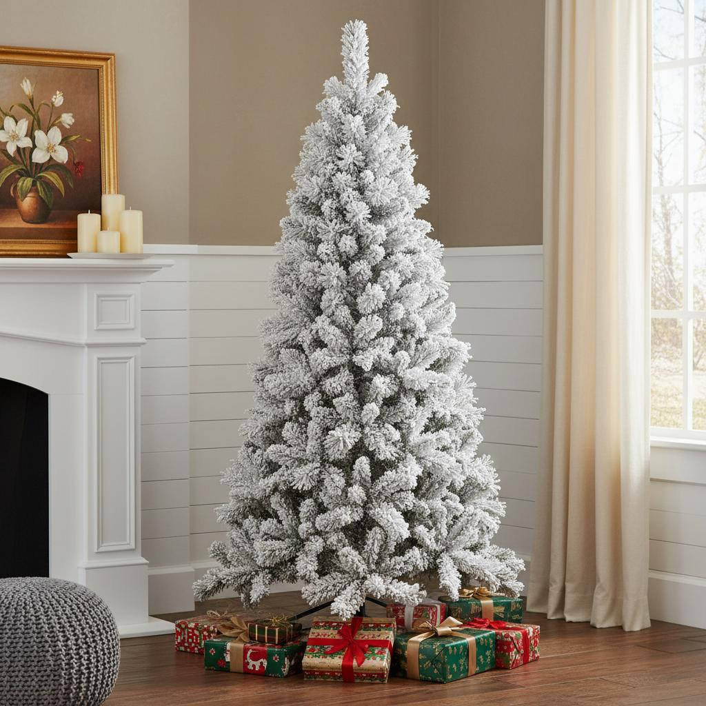 This 8-foot white full pine christmas tree is a great way to decorate and celebrate the season. Crafted from durable polyvinyl chloride, this artificial tree brings a touch of elegance to your holiday decor. Its regular fullness creates a lush and inviting appearance, perfect for showcasing your favorite ornaments. The tree includes a sturdy stand, providing stability while you hang lights and decorations. Measuring an impressive 96 inches tall, it makes a striking centerpiece in any room. With its beautiful white needles, this tree captures the magic of winter and enhances the festive ambiance of your home throughout the holiday season. 96.00-inch h x 53.00-inch w x 53.00-inch d.