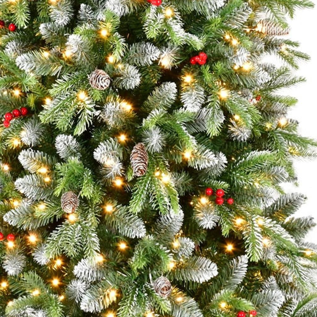 Decorate and celebrate in style with this festive 6-foot white pre lit full pine christmas tree with decorations. This artificial tree features an elegant design, boasting a regular fullness that creates a captivating silhouette. Its needle colors in green and white add a unique touch to your holiday décor. Equipped with instant power lights, setup is a breeze, allowing you to enjoy the season without the hassle. The led bulbs provide bright, clear white lighting, while the stay-lit technology ensures every bulb remains illuminated throughout the festivities. With 380 lights included, this tree guarantees a dazzling display during your celebrations. The durable materials ensure long-lasting beauty for years to come. 72.00-inch h x 37.00-inch w x 37.00-inch d.