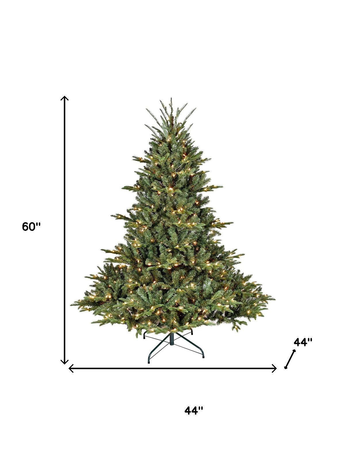 Decorate and celebrate in style with this festive 5-foot pre lit full pine christmas tree. This stunning artificial tree features lush green needles that create a vibrant centerpiece for your holiday celebrations. With its regular fullness shape, it offers a classic look that complements any decor. The tree is equipped with 350 led clear white lights, providing a warm and inviting glow. Instant power lights make setup a breeze, eliminating the hassle of tangled cords. The sturdy tree stand ensures stability, while the stay-lit bulbs guarantee consistent illumination throughout the season. Perfect for creating cherished memories with family and friends during the holidays. 60.00-inch h x 44.00-inch w x 44.00-inch d.