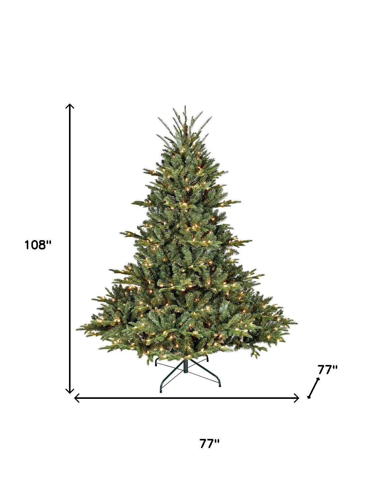 Add some festive spirit to your space with this 9-foot pre lit full pine christmas tree. This artificial tree features a lush green color that mimics the beauty of a natural pine tree. Designed for easy setup, it comes equipped with instant power lights, ensuring you can enjoy a well-lit holiday season in no time. With 3,451 tips, the regular fullness creates a stunning display of holiday cheer. The tree is illuminated by energy-efficient led bulbs that emit clear white lights, providing a constant glow without the hassle of blinking. Additionally, the included tree stand offers sturdy support for your seasonal centerpiece. 108.00-inch h x 77.00-inch w x 77.00-inch d.
