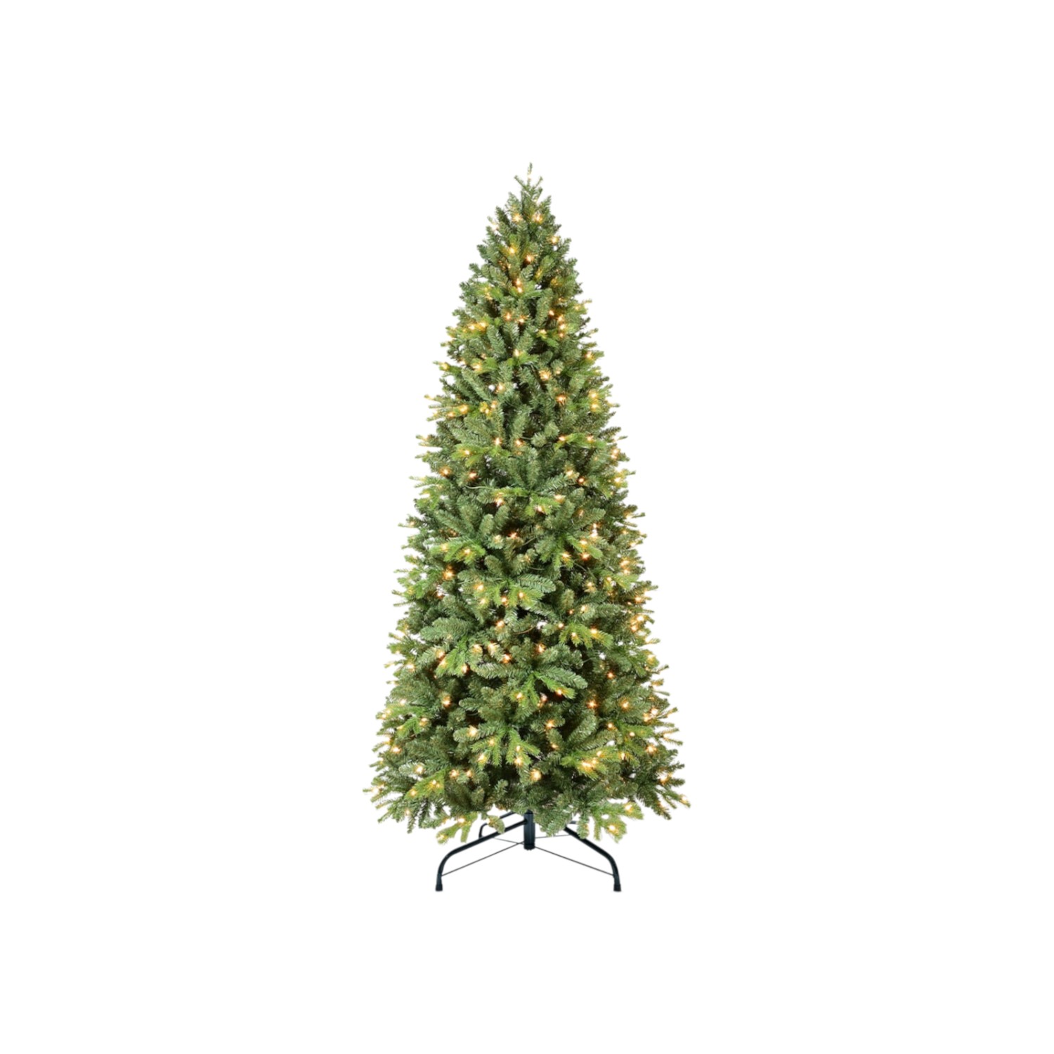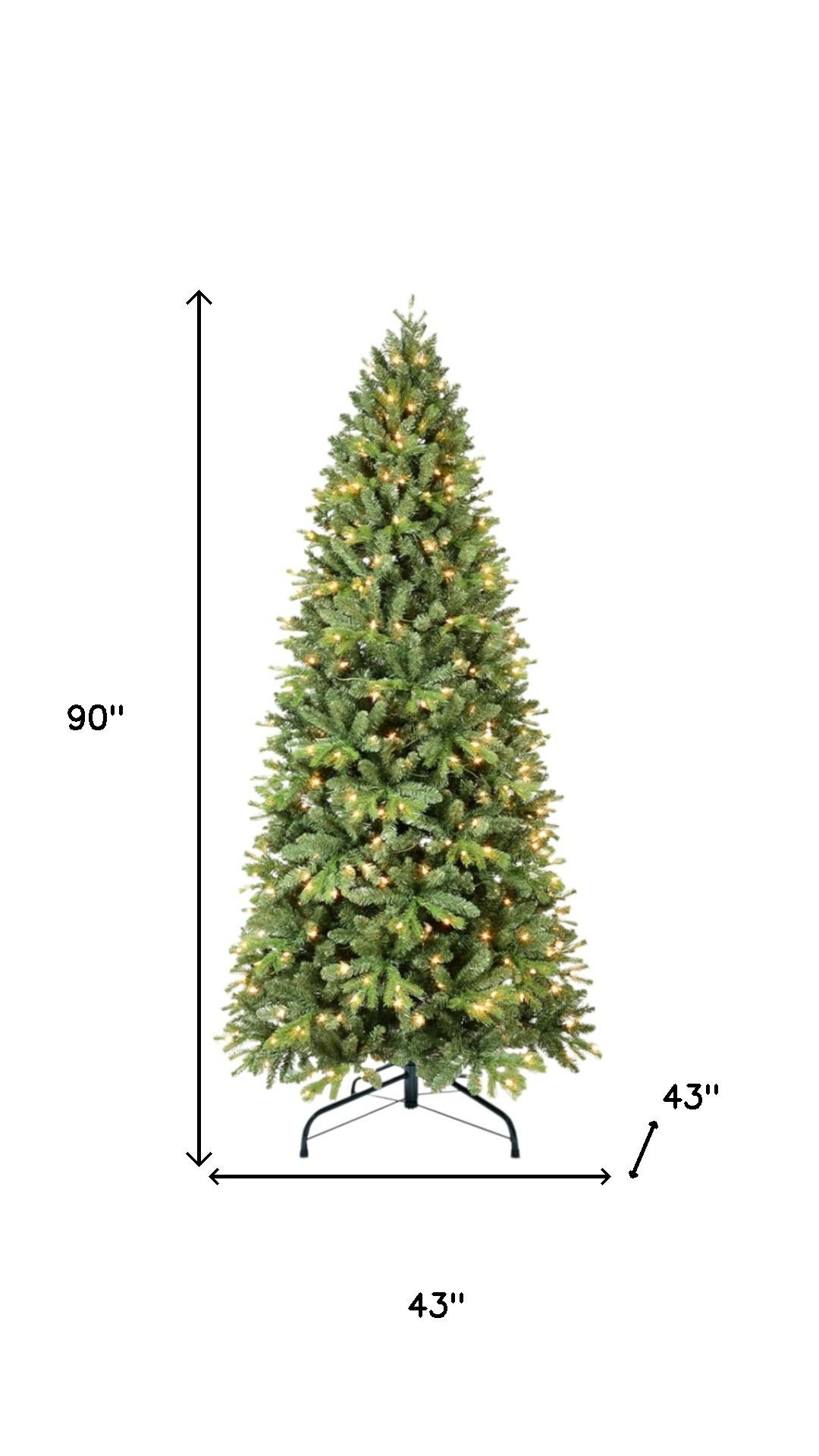 Add some festive spirit to your space with this 7.5-foot pre lit full pine christmas tree. This artificial tree boasts a lush green color, perfectly mimicking the beauty of a fresh pine. Designed with regular fullness, it creates a stunning centerpiece for your holiday gatherings. The tree is equipped with 450 clear white led lights that provide a brilliant glow and include stay-lit bulbs for uninterrupted illumination. The instant power lights feature allows for quick setup, making decorating hassle-free. Crafted from durable polyvinyl chloride, this tree will last for years. A sturdy tree stand is included, ensuring stability throughout the festive season. 90.00-inch h x 43.00-inch w x 43.00-inch d.