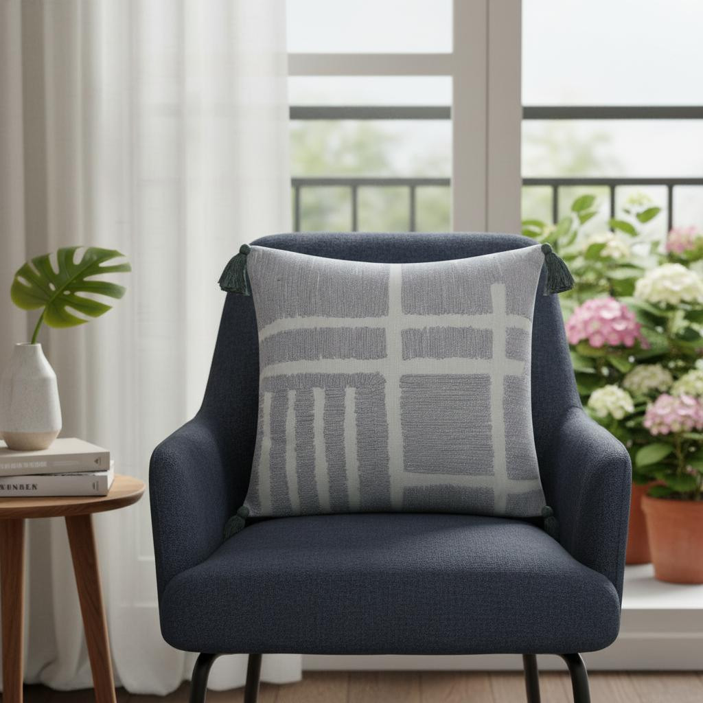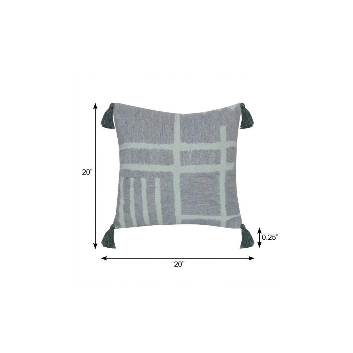Bring a bit of fashion and zip to your space with this eye-catching and comfy 20-inch green and olive green geometric cotton throw pillow cover with tassels. Durable green and olive green cotton has been used to give this pillow cover a beautiful look that will stand the test of time. Charming decorative tassels give this design texture along with a hand-crafted look and feel. Decorative pillow covers are a great way to change up the look and feel of your space easily and quickly. Combine with your own fill or insert to add decoration and dimension to your favorite chair, accent your sofa, or to use as part of your bed ensemble. 20.00-inch h x 20.00-inch w x 0.25-inch d.