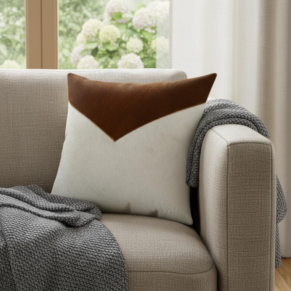 faux leather throw pillow cover, leather throw pillow cover, faux leather throw pillow, block faux leather throw pillow, 20" ivory brown color block |