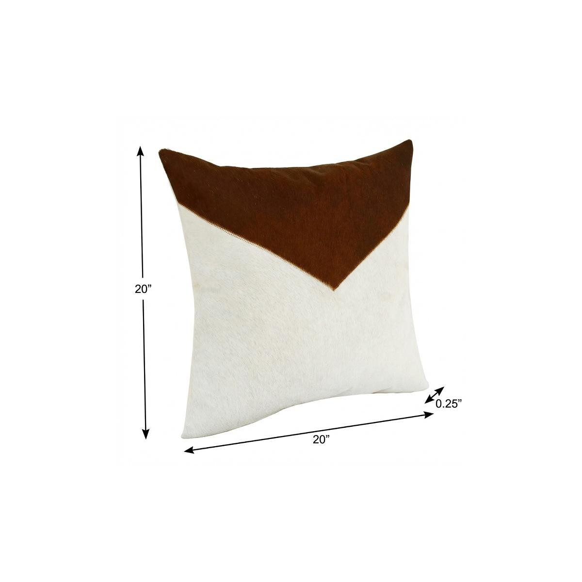 This 20-inch ivory and brown color block faux leather throw pillow cover will add a beautiful decorative accent to your decor. This ivory and brown hued, accent pillow cover, represents quality construction, expertly made from durable faux leather that is not only long lasting but soft to the touch as well. Decorative pillow covers are a great way to change up the look and feel of your space easily and quickly. Combine with your own fill or insert to add decoration and dimension to your favorite chair, accent your sofa, or to use as part of your bed ensemble. 20.00-inch h x 20.00-inch w x 0.25-inch d.